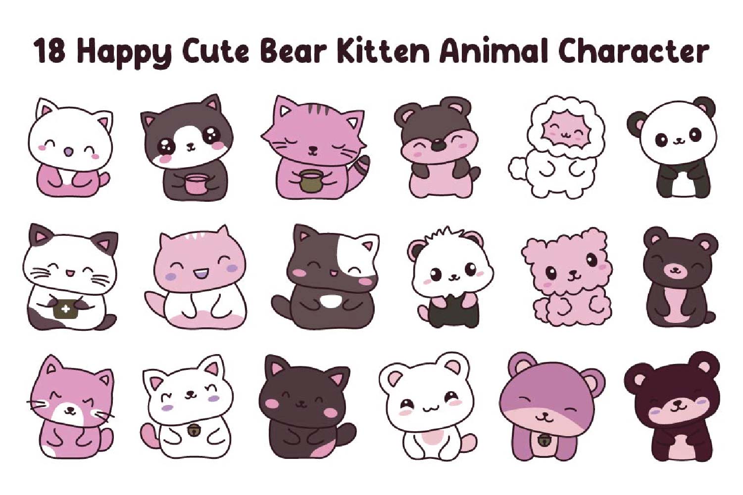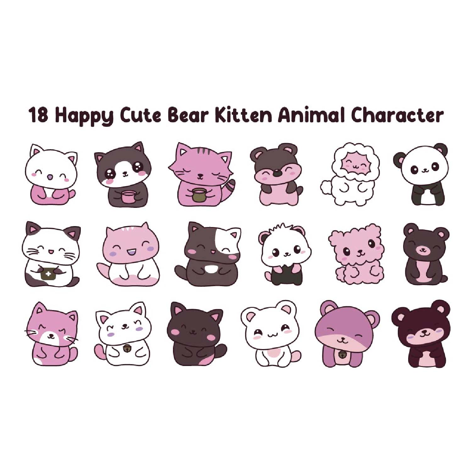 18 Happy Cute Bear Kitten Animal Character Illustration