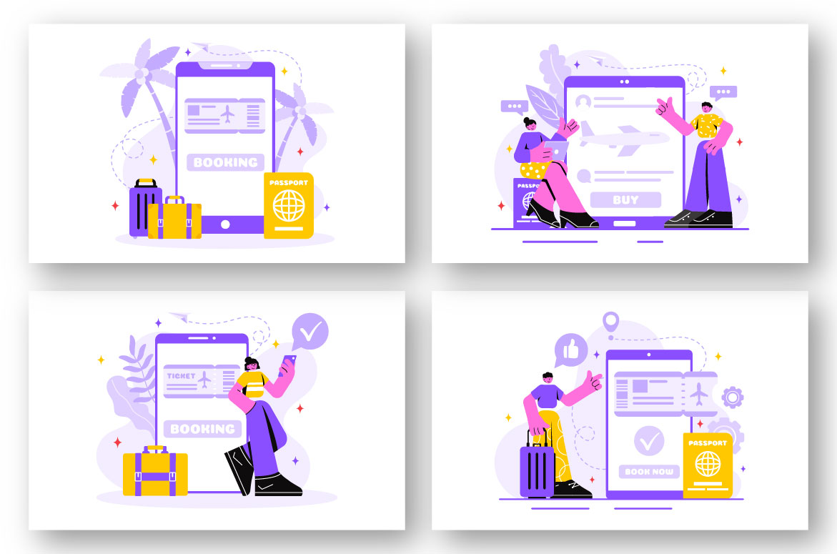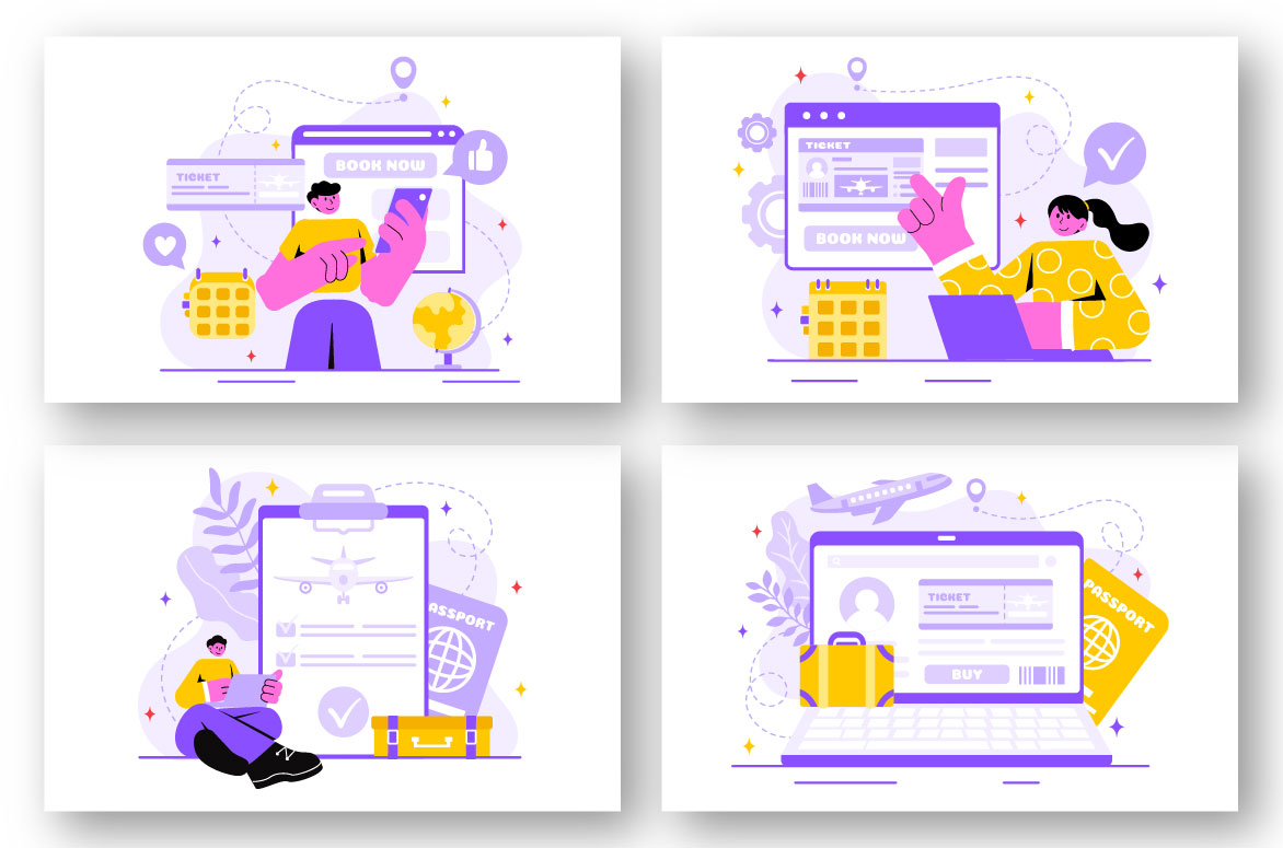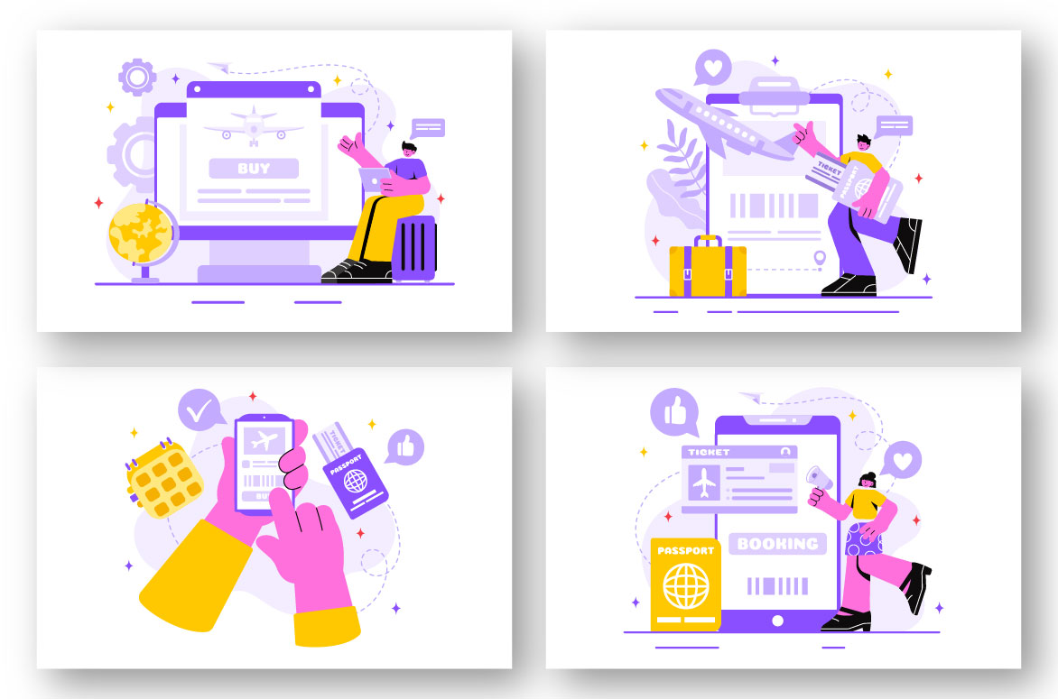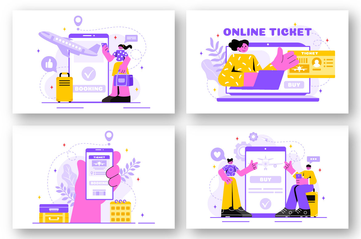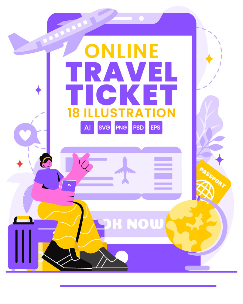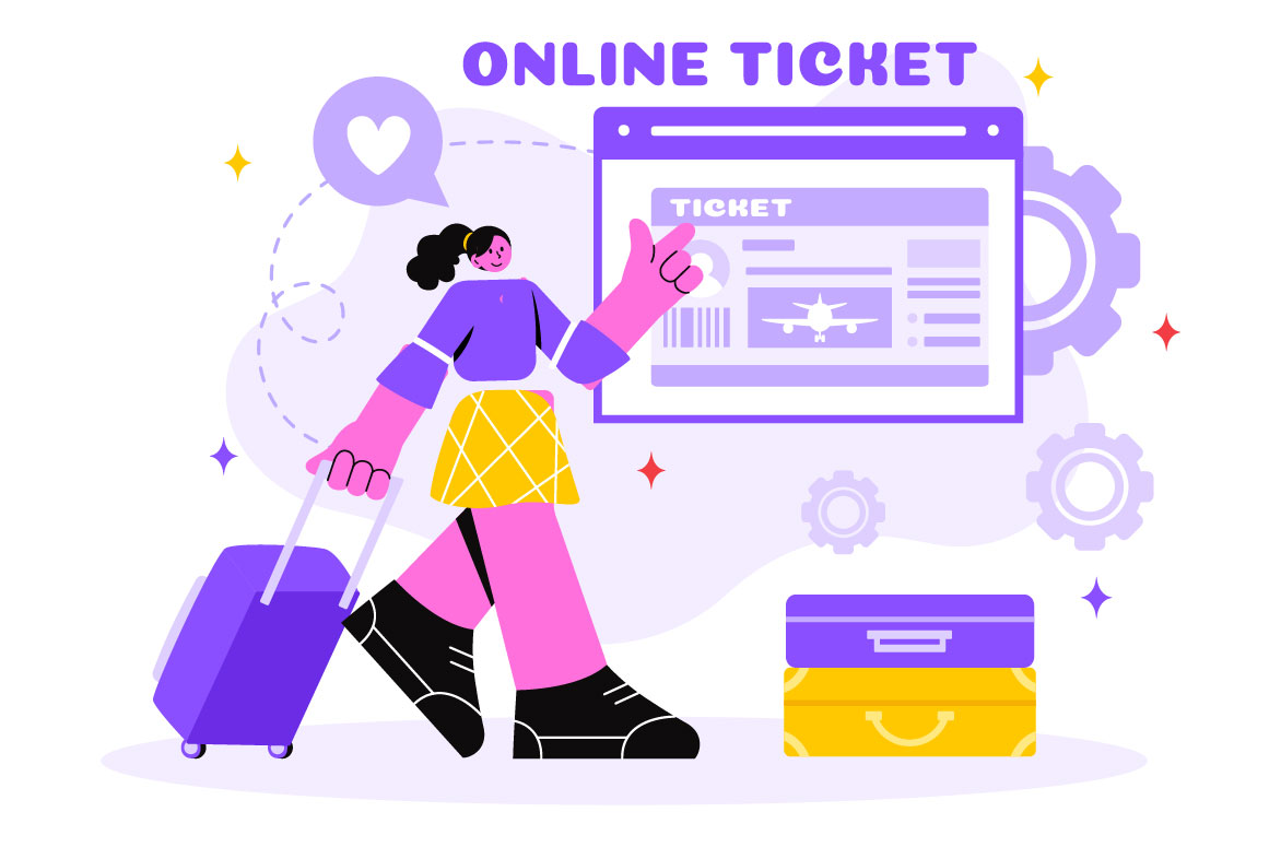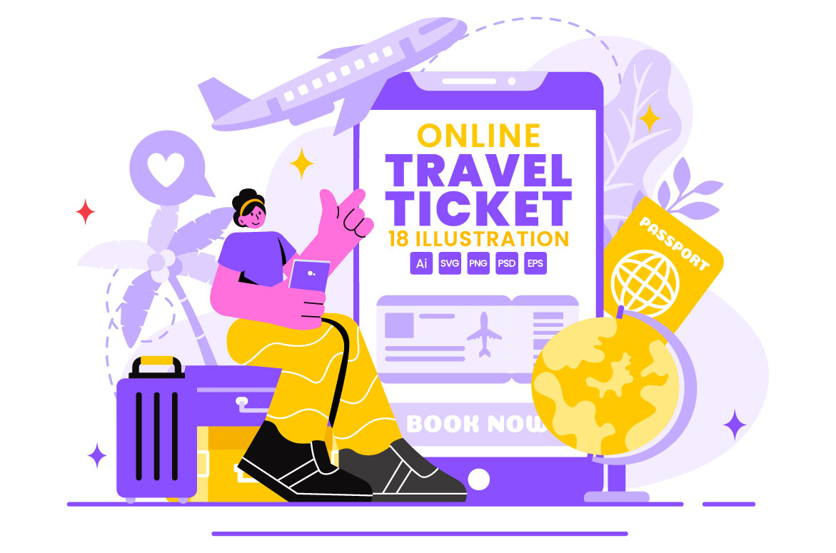Online Travel Ticket Vector Illustration Through a Transportation and Journey Provider App for Booking in a Flat Style Cartoon Background Suitable for Poster, Web Banner, Brochure, Landing Page and Others Background Template Features: