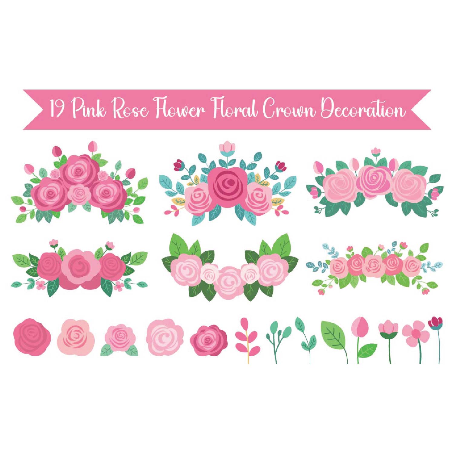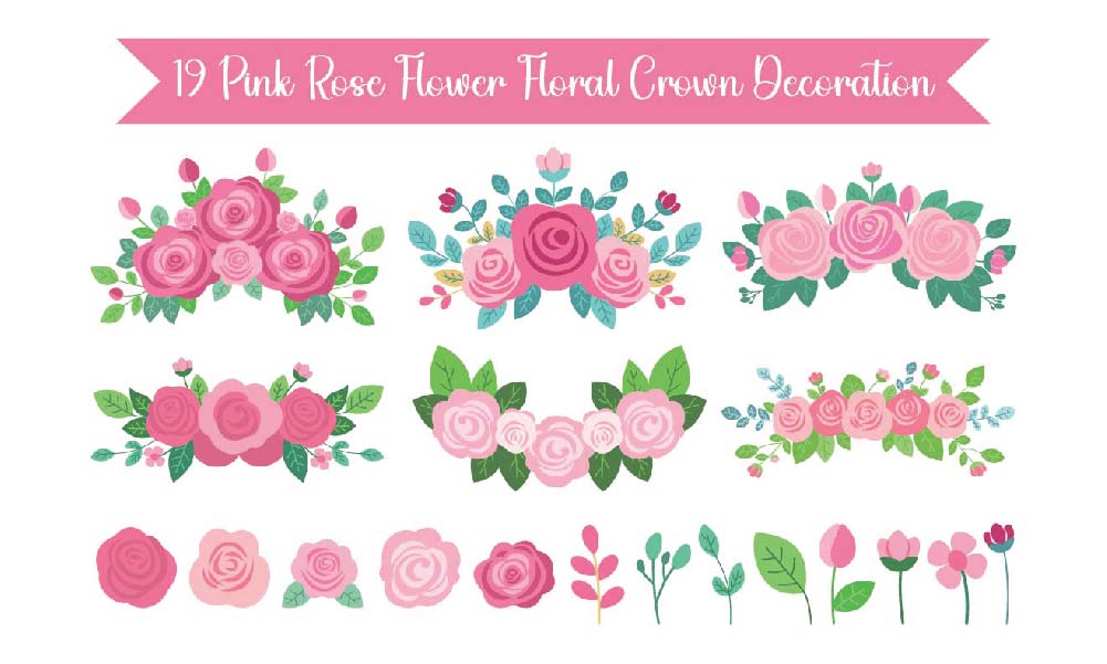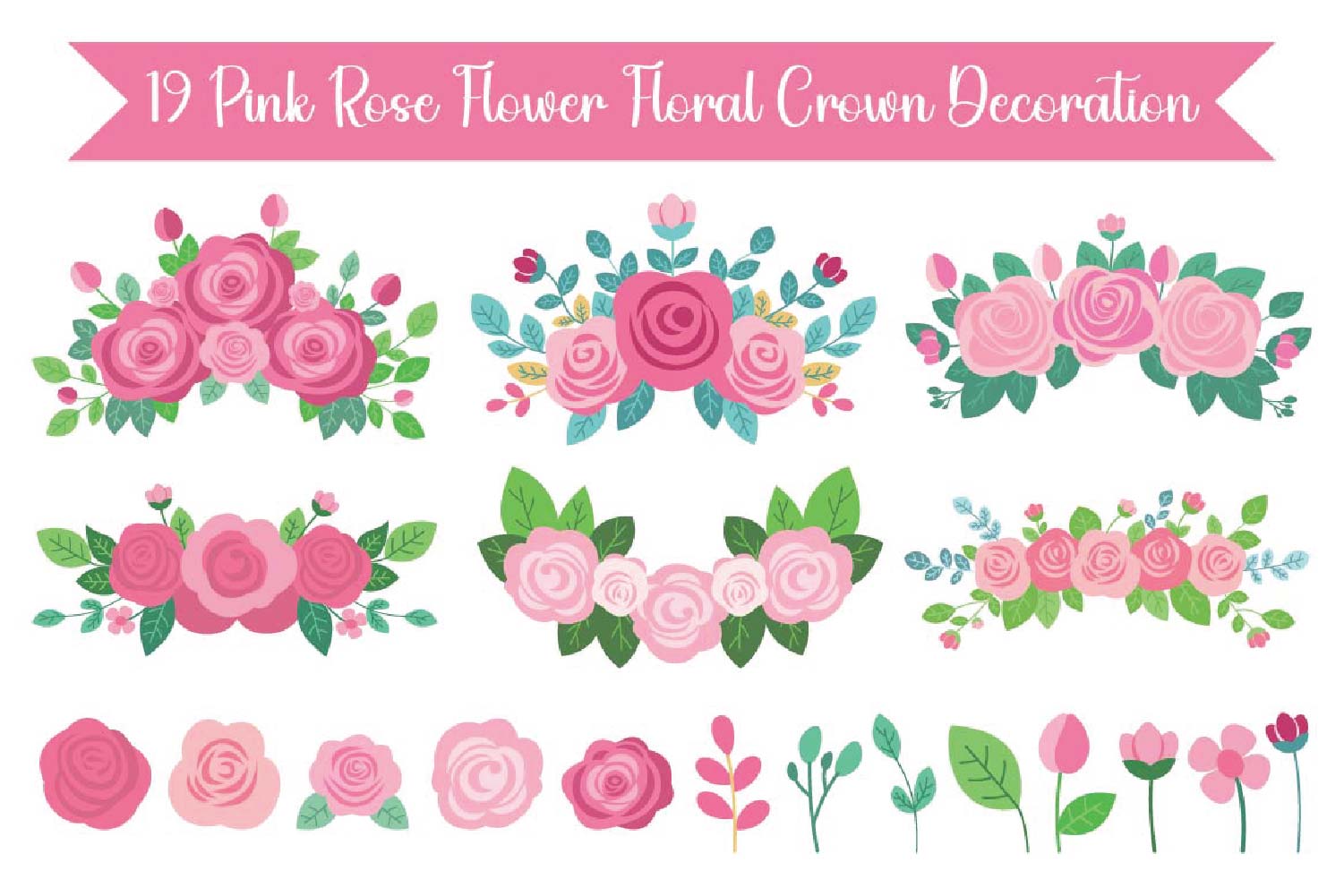 19 Pink Rose Flower Floral Crown Decoration Illustration