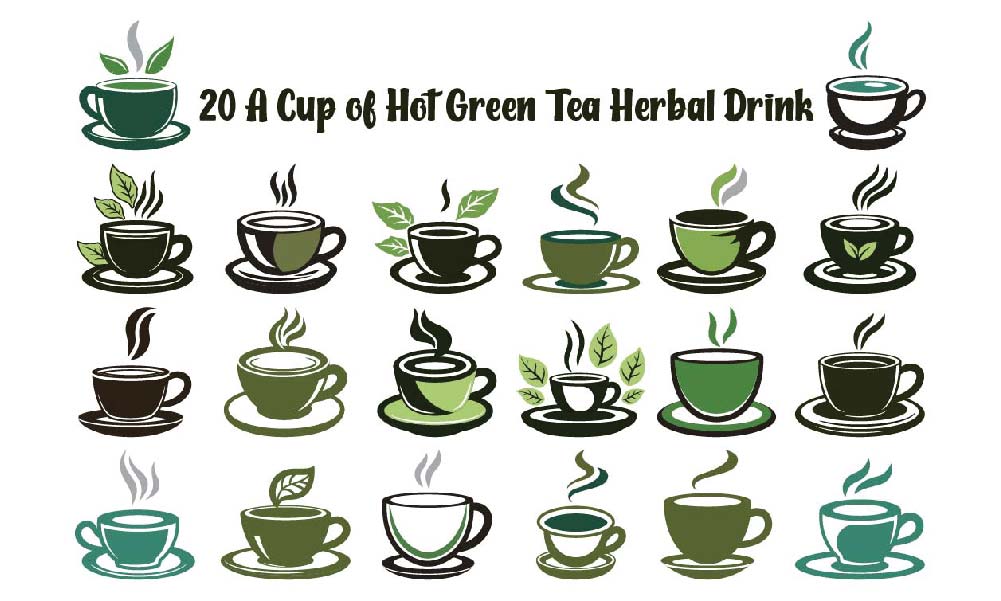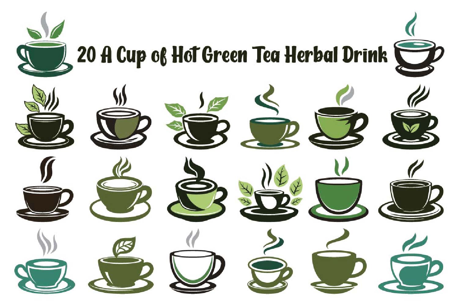 20 A Cup of Hot Green Tea Herbal Drink Illustration