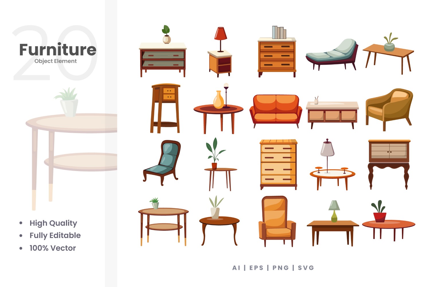 Set of 20 Furniture vector illustration | Simple and clean design,perfect for websites, mobile apps, books, social media, flyer, print, banners, posters and many more. To resize and change color you can easily edit on vector software like Adobe Illustrator and CorelDRAW.