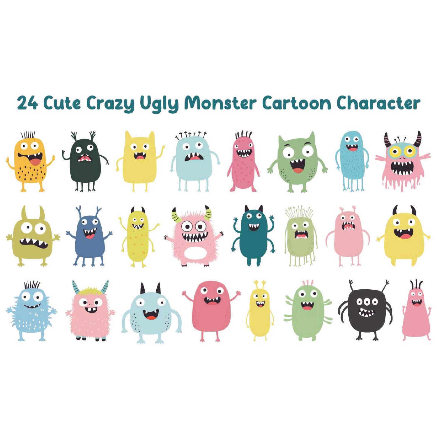 24 Cute Crazy Ugly Monster Cartoon Character Illustration