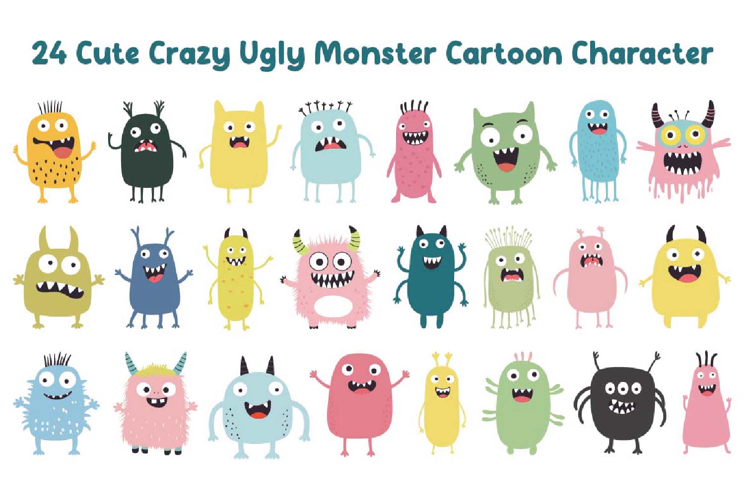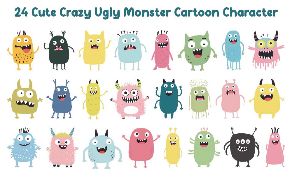 24 Cute Crazy Ugly Monster Cartoon Character Illustration
