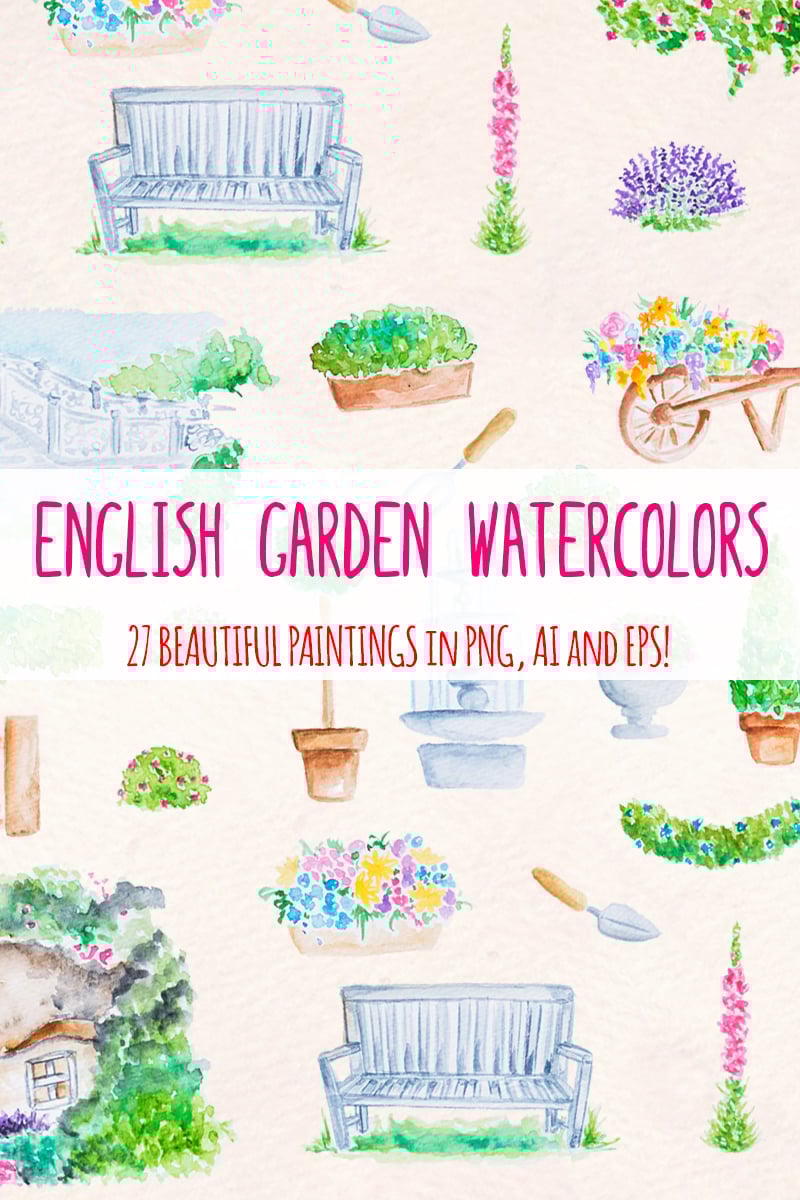 This pack contains 27 themed drawings/paintings including gates, trees, flowers and houses. The PNGs are the original hand drawn scans and the EPS and AI files are slightly smoothed versions for accurate scaling.