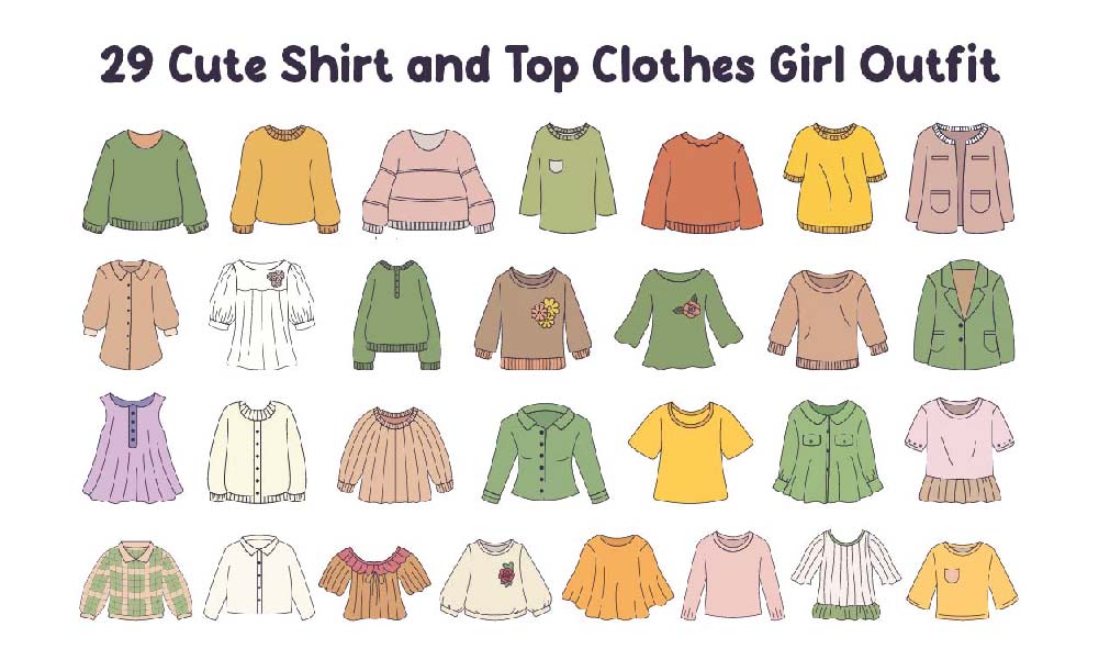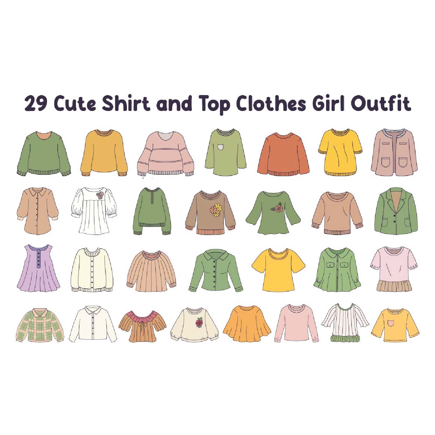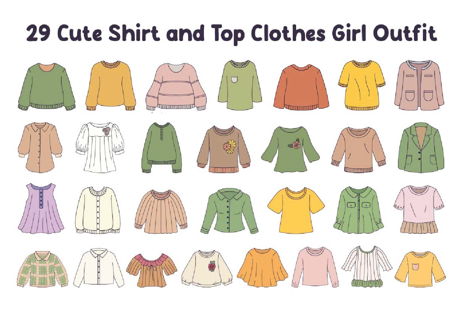 29 Cute Shirt and Top Clothes Girl Outfit Illustration