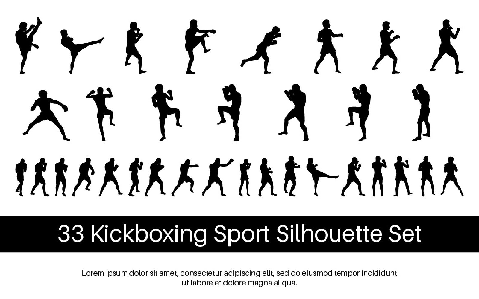 33 Kickboxing Sport Silhouette Set