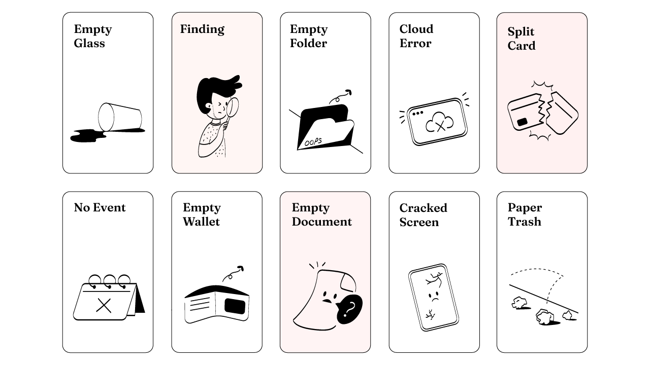 Boost your UX design with our Empty state Illustration Set, crafted to enhance your digital projects with a professional and modern touch! 🎨✨