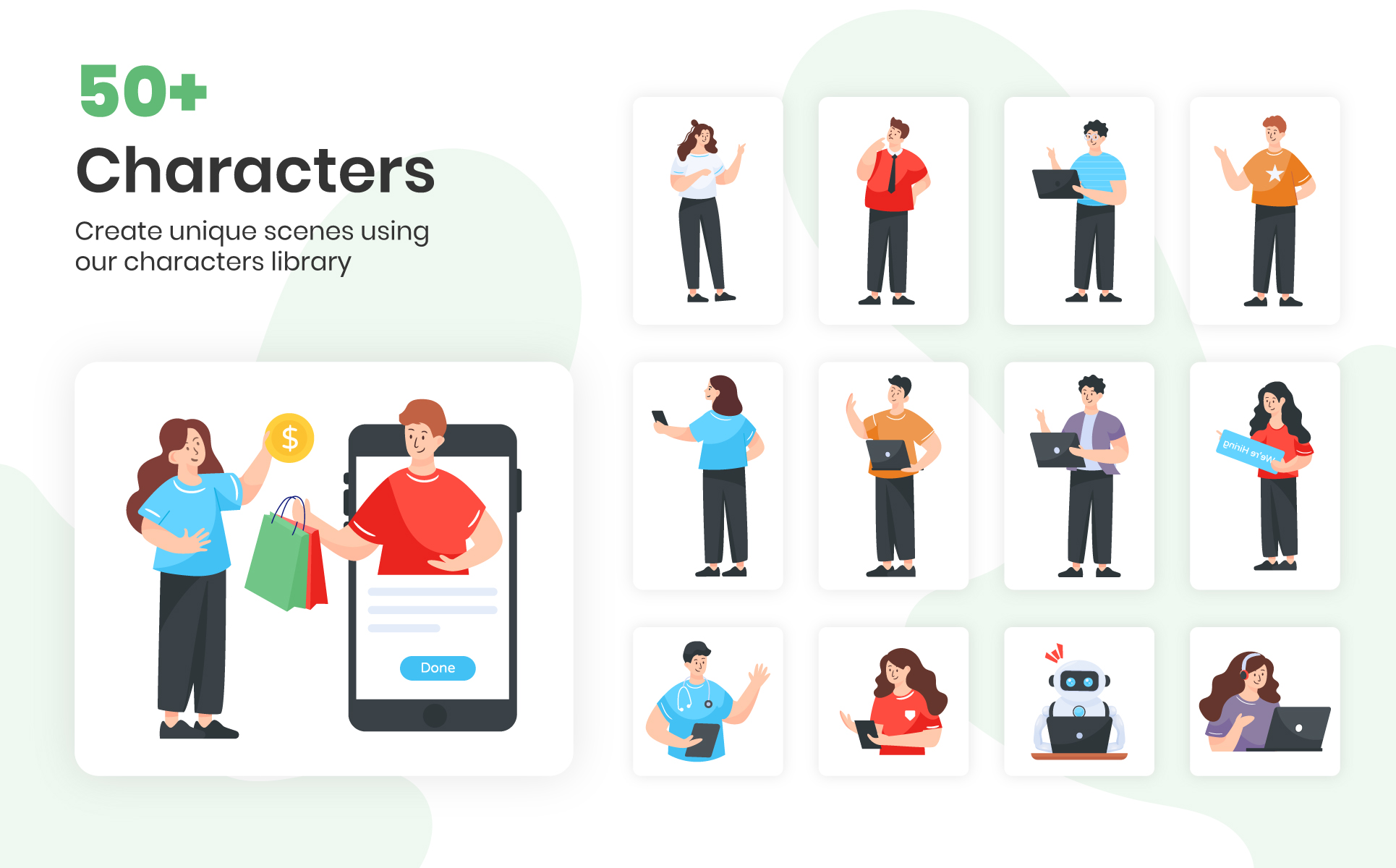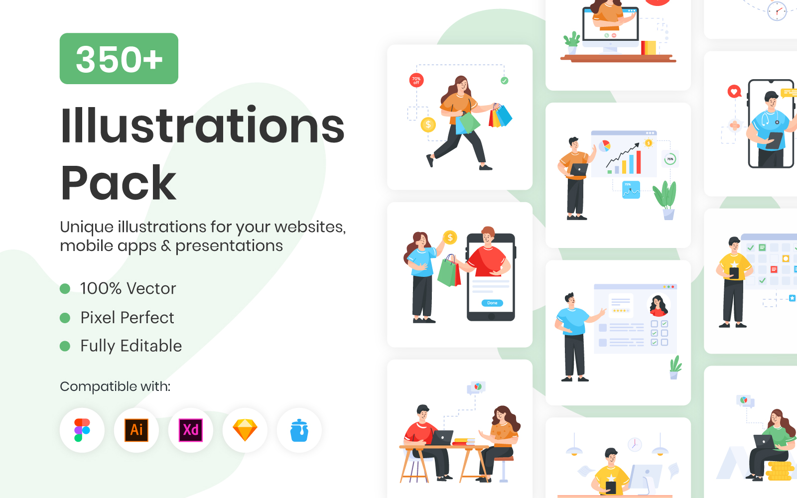 350+ Illustrations Pack, containing various graphic vectors and objects in vector. They’re designed carefully to fit your needs: web design, UX/UI, apps or anything you can dream up. You can change the colors easily according to your project without losing the quality of the image! This pack includes the following illustration categories: