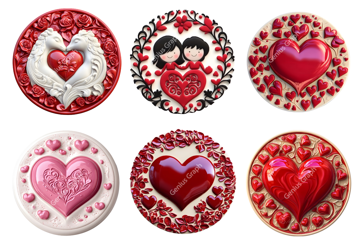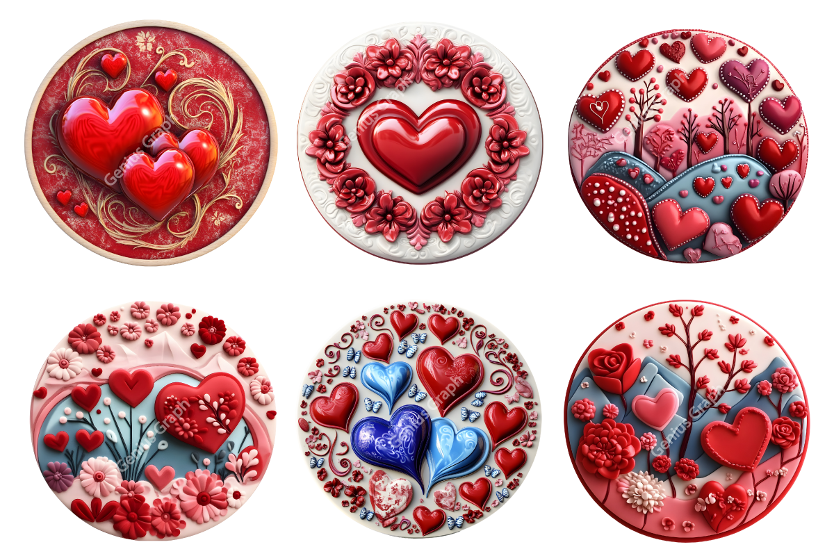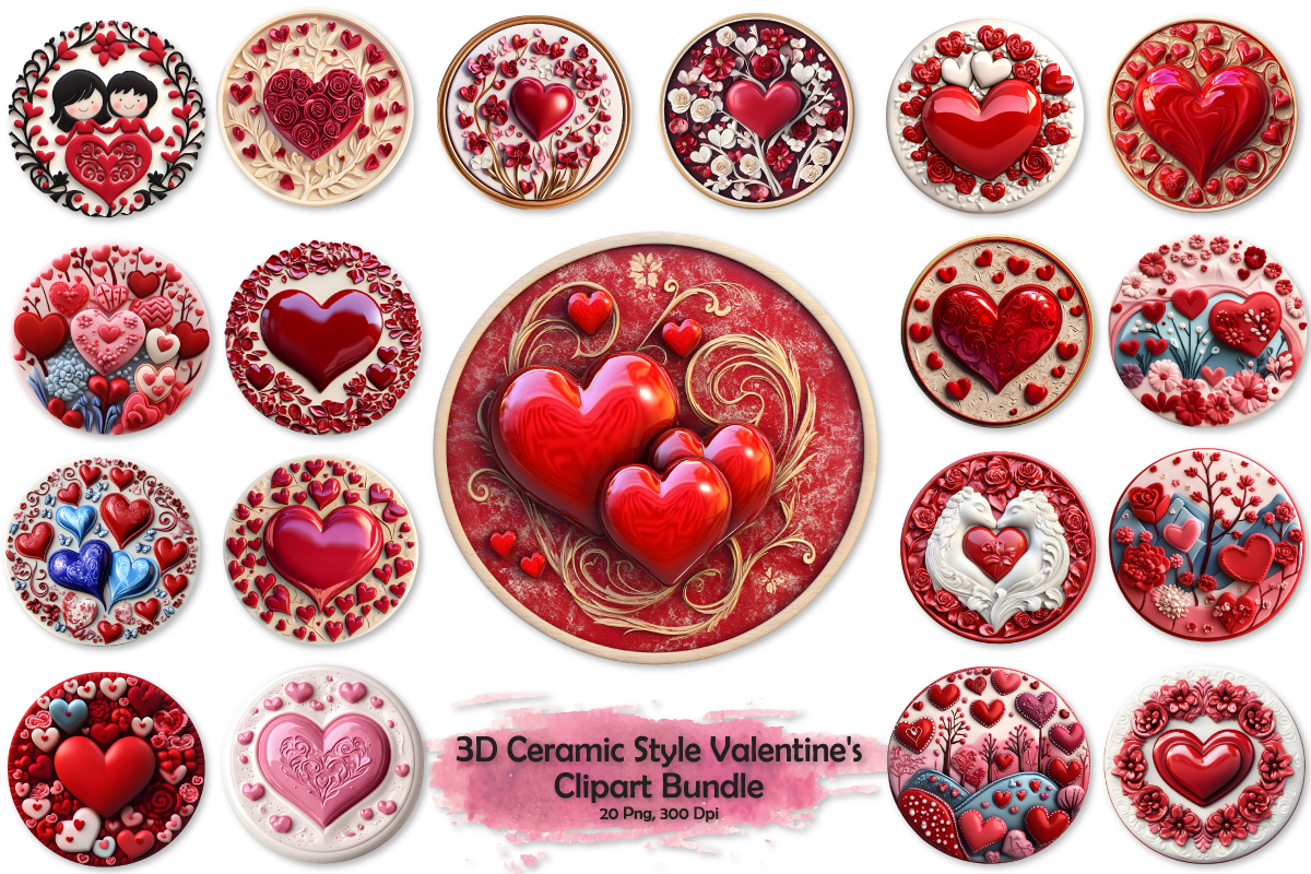3D Ceramic Style Round Valentine's Day Sublimation Bundle | Valentine's Day Ornaments, Valentine Clipart Bundle.