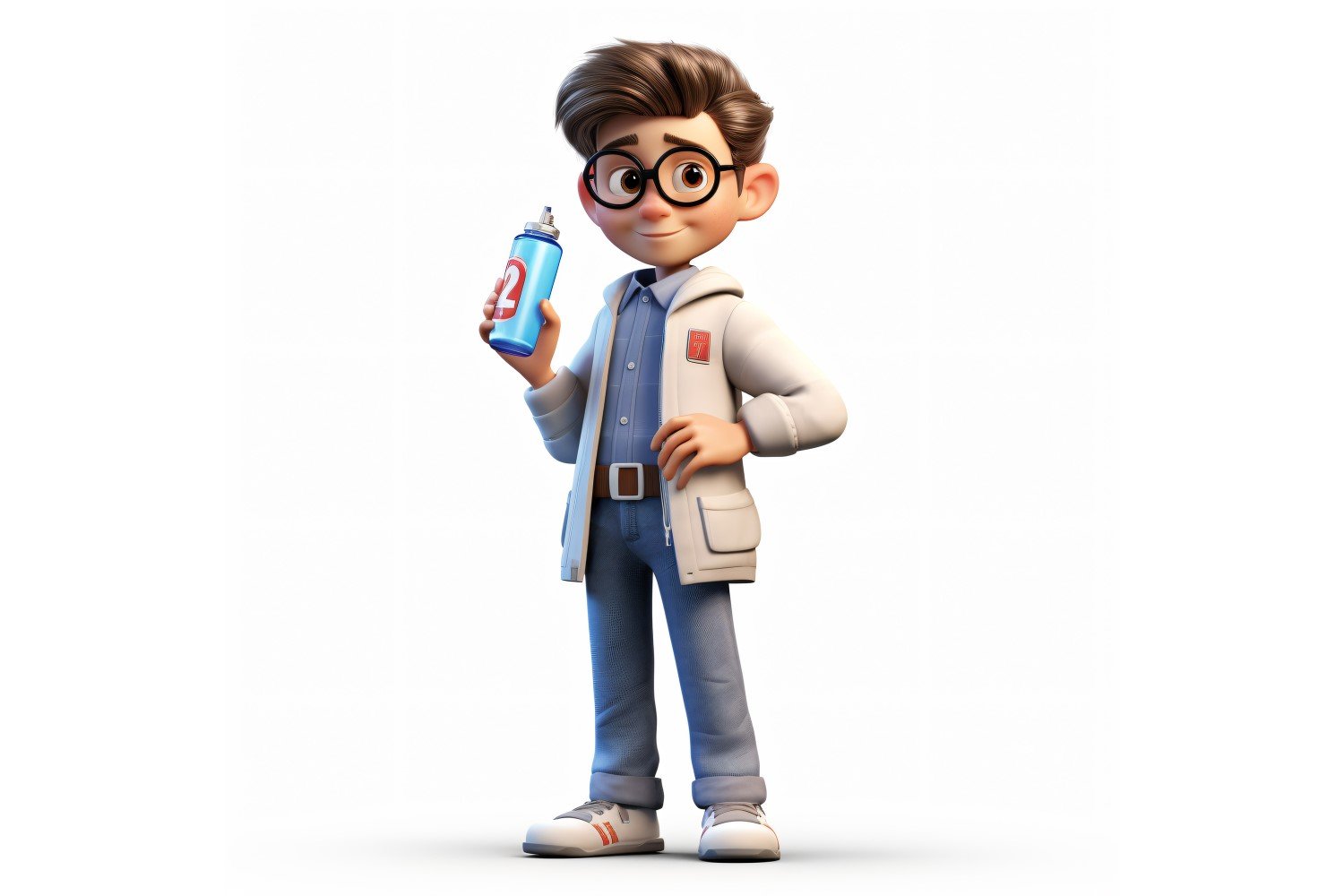 Introduce young readers to a charming 3D Pixar character, a child boy, standing confidently in his occupation-specific environment. This full-body character, meticulously crafted with vivid detail, adds depth and excitement to kids' books, packaging designs, and website UI/UX. Through captivating visuals, children are drawn into imaginative worlds that spark curiosity and creativity.