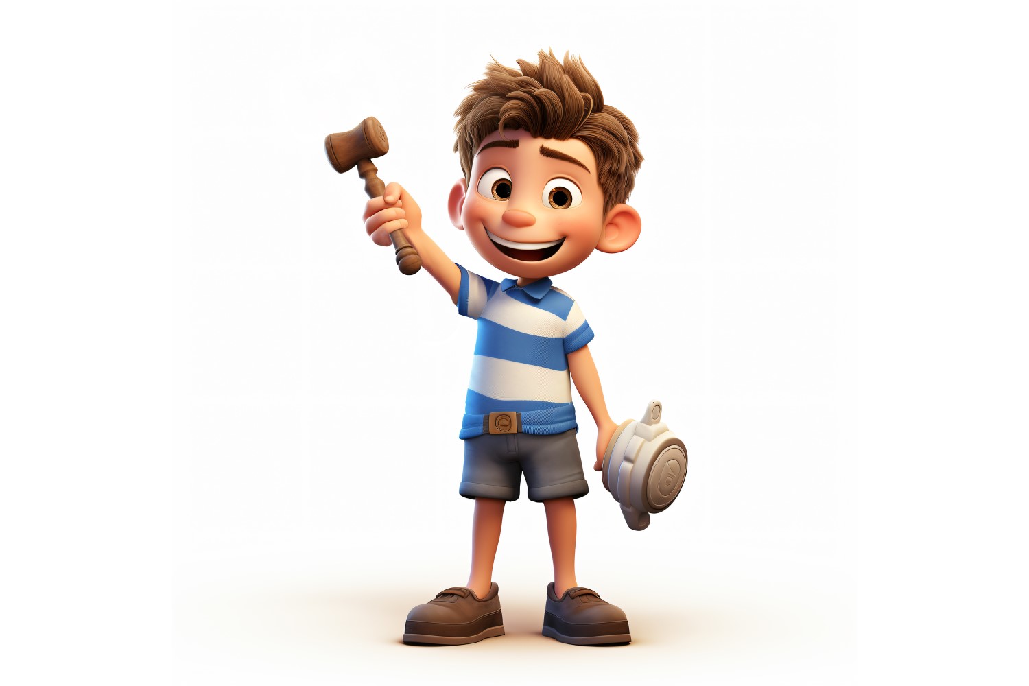 Introduce young readers to a charming 3D Pixar character, a child boy, standing confidently in his occupation-specific environment. This full-body character, meticulously crafted with vivid detail, adds depth and excitement to kids' books, packaging designs, and website UI/UX. Through captivating visuals, children are drawn into imaginative worlds that spark curiosity and creativity.