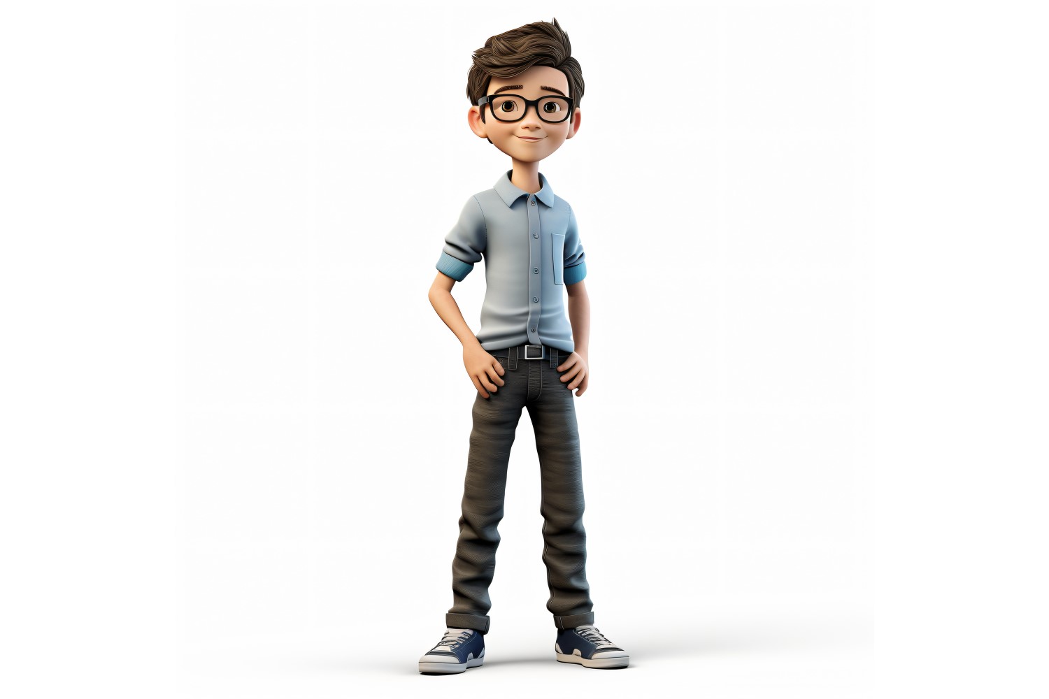 Introduce young readers to a charming 3D Pixar character, a child boy, standing confidently in his occupation-specific environment. This full-body character, meticulously crafted with vivid detail, adds depth and excitement to kids' books, packaging designs, and website UI/UX. Through captivating visuals, children are drawn into imaginative worlds that spark curiosity and creativity.