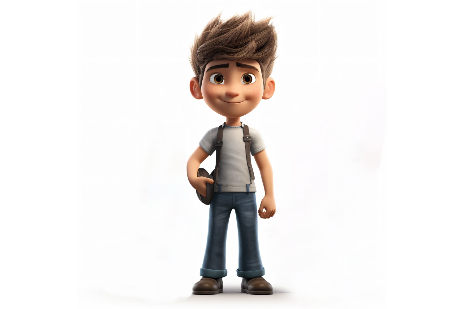 Introduce young readers to a charming 3D Pixar character, a child boy, standing confidently in his occupation-specific environment. This full-body character, meticulously crafted with vivid detail, adds depth and excitement to kids' books, packaging designs, and website UI/UX. Through captivating visuals, children are drawn into imaginative worlds that spark curiosity and creativity.