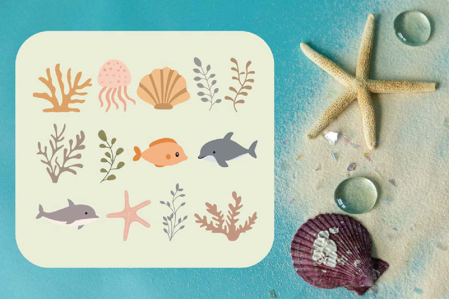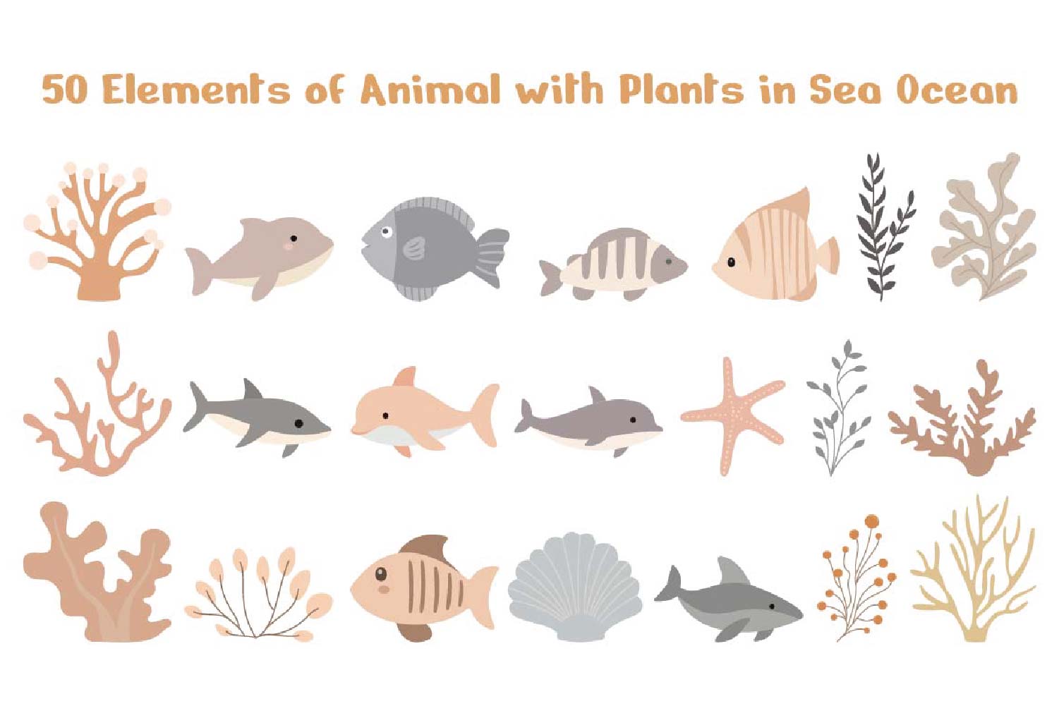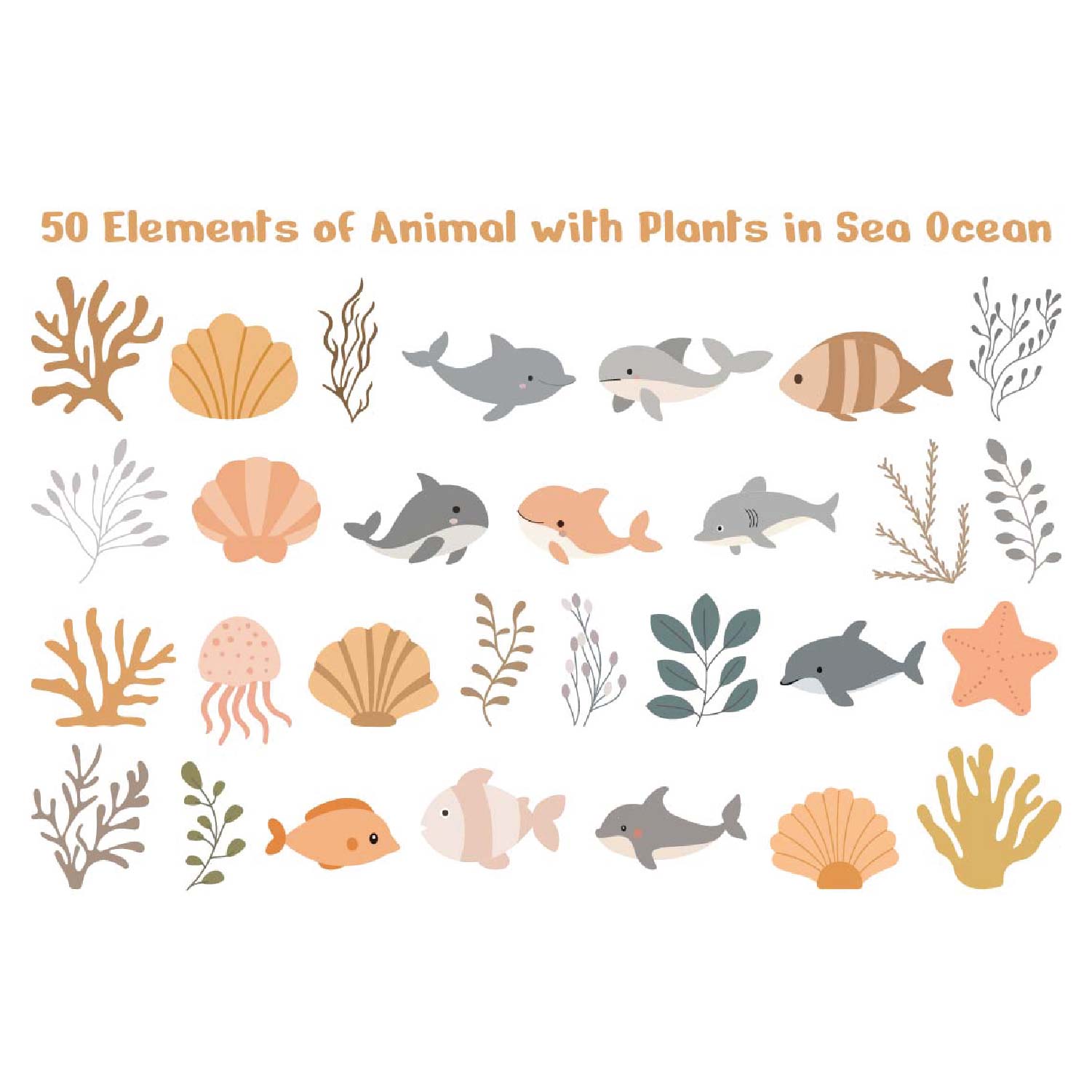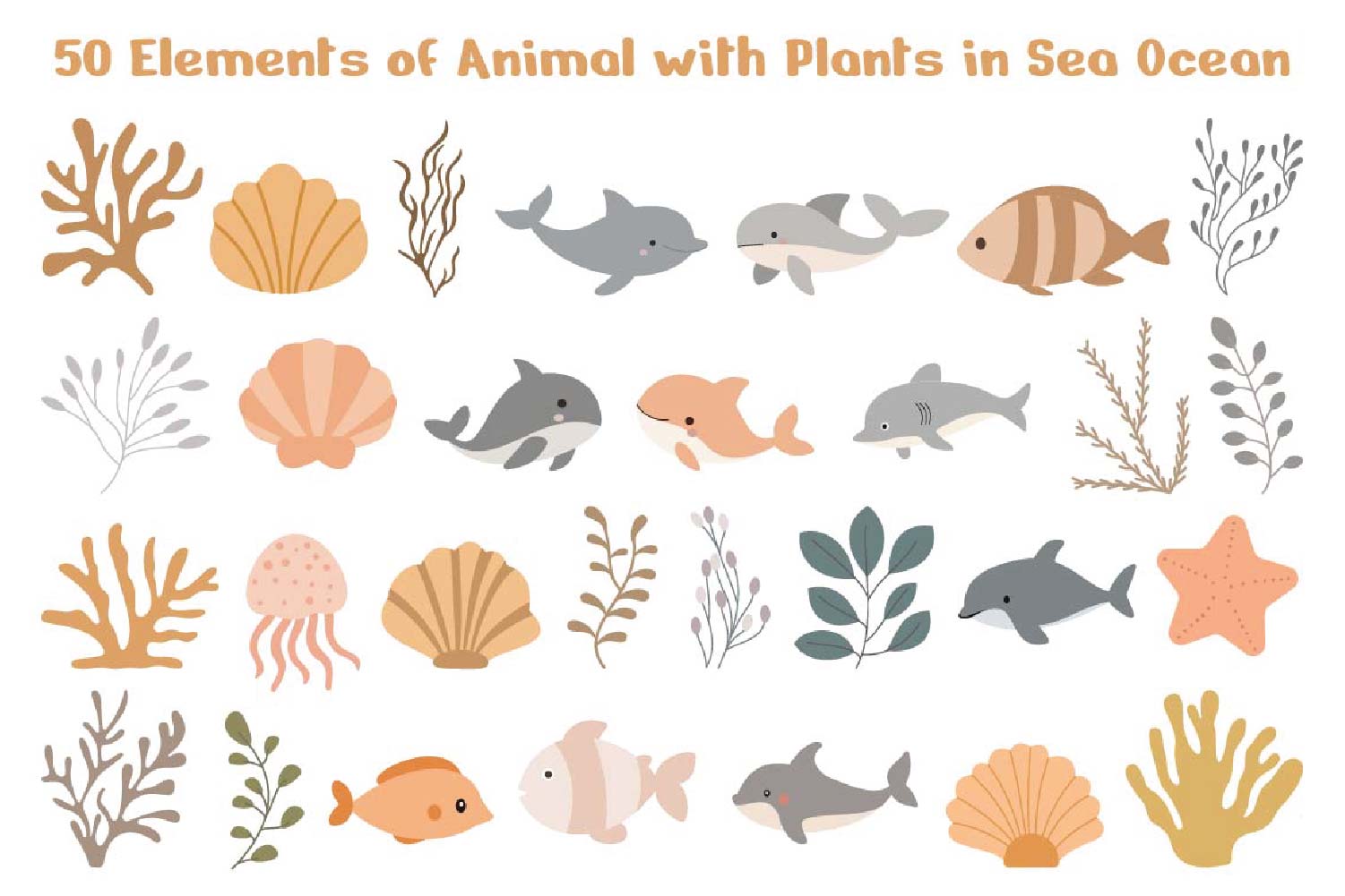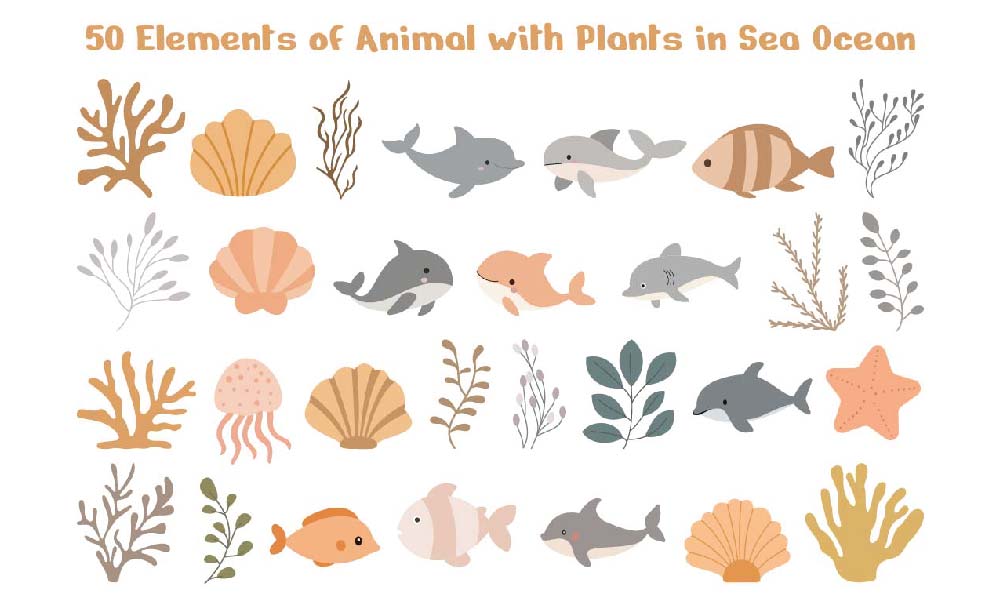 50 Elements of Animal with Plants in Sea Ocean