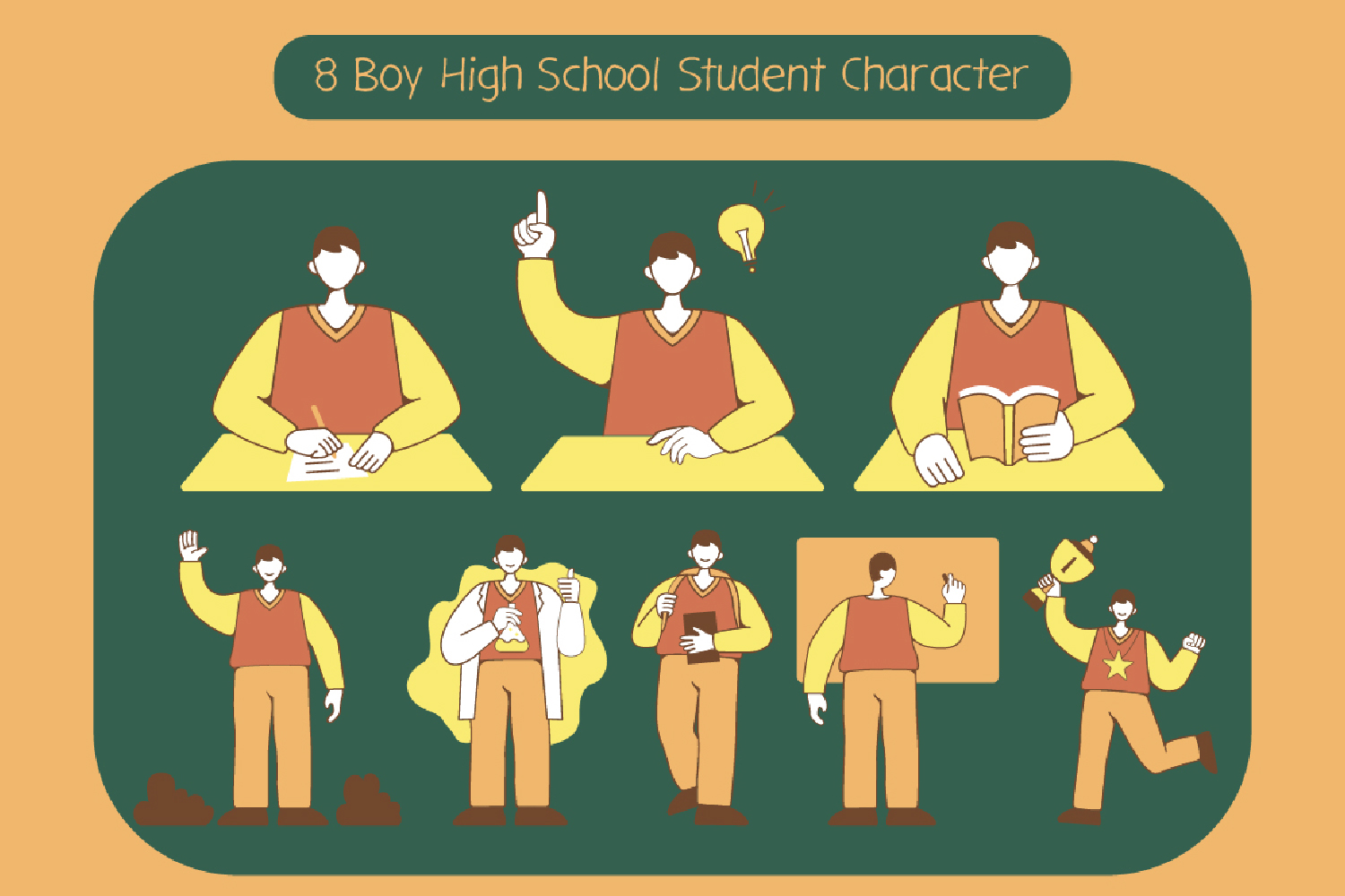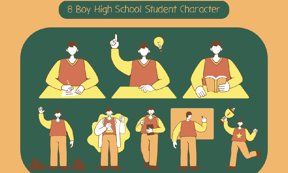 8 Boy High School Student Character Illustration