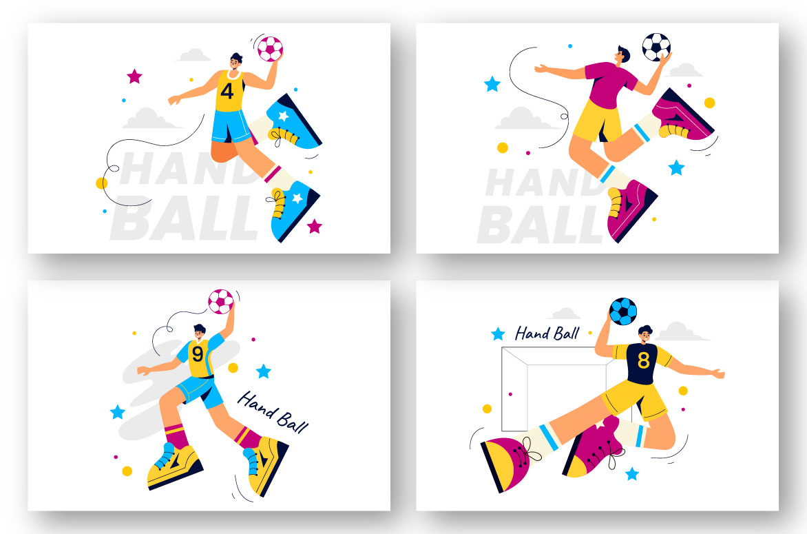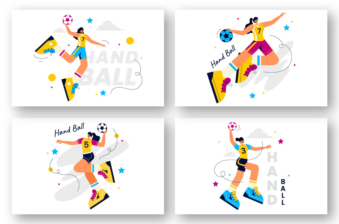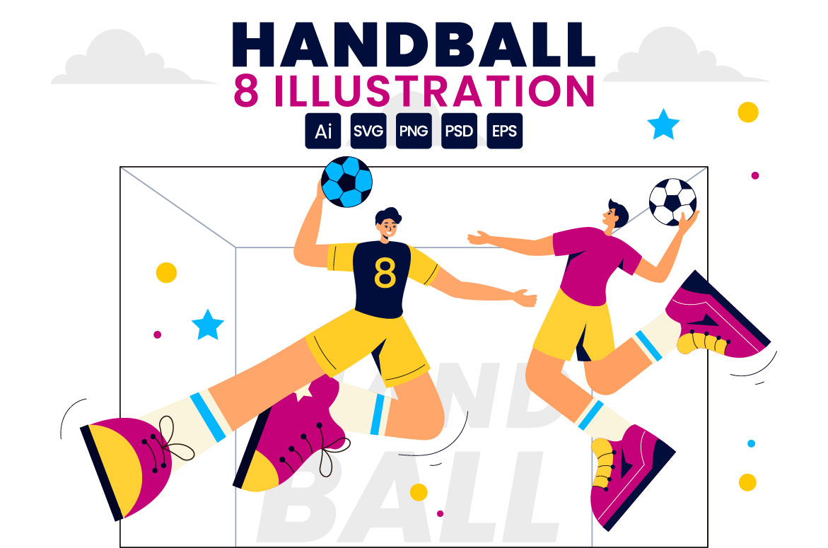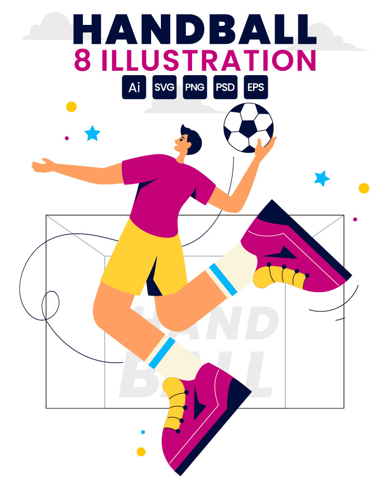 Handball Vector Illustration of a Player Touching the Ball and Scoring a Goal During a Sports Competition in a Flat Style Cartoon Background Suitable for Poster, Web Banner, Brochure, Landing Page and Others Background Template Features: