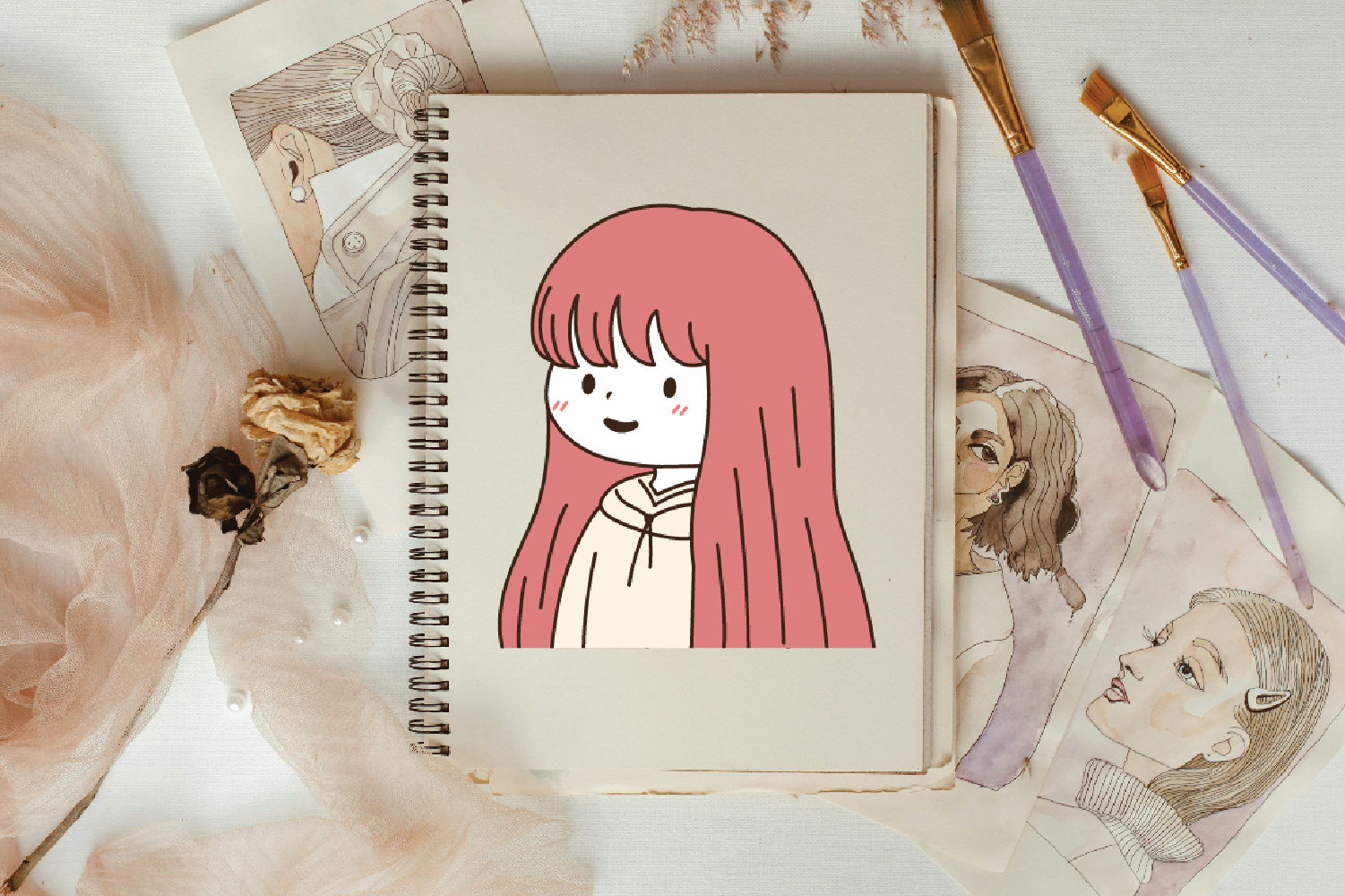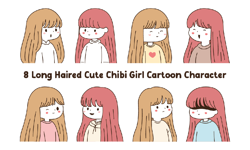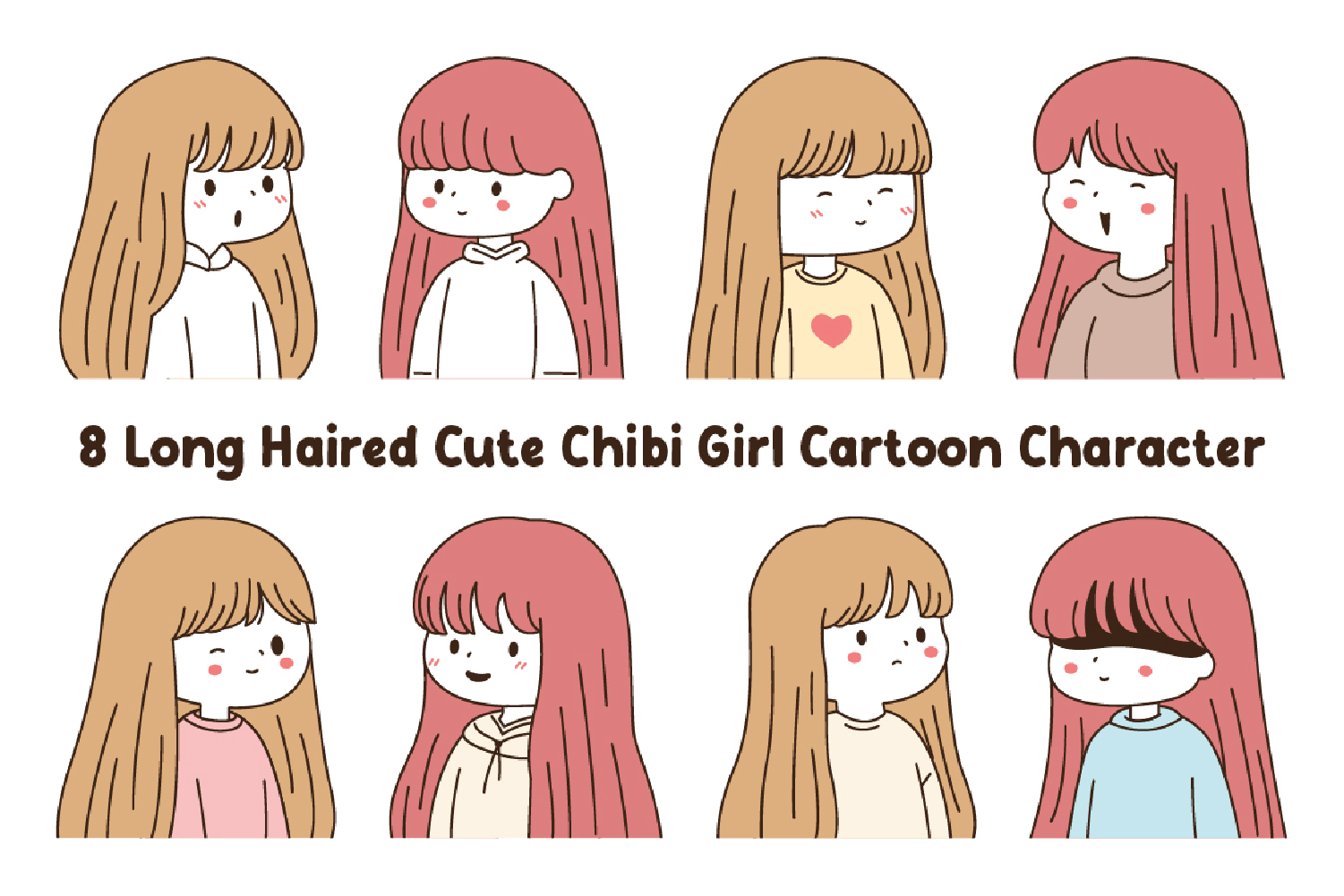 8 Long Haired Cute Chibi Girl Cartoon Character Illustration