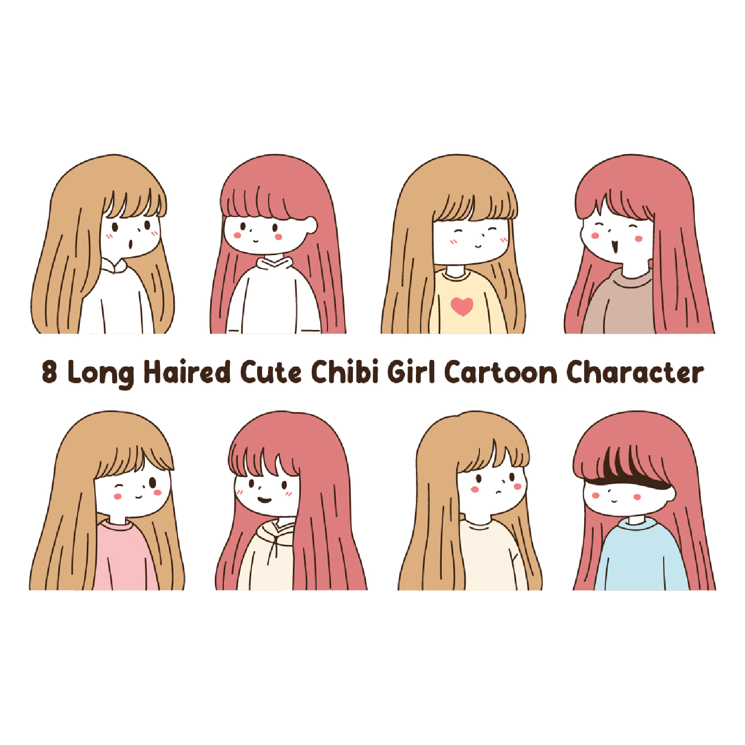 8 Long Haired Cute Chibi Girl Cartoon Character