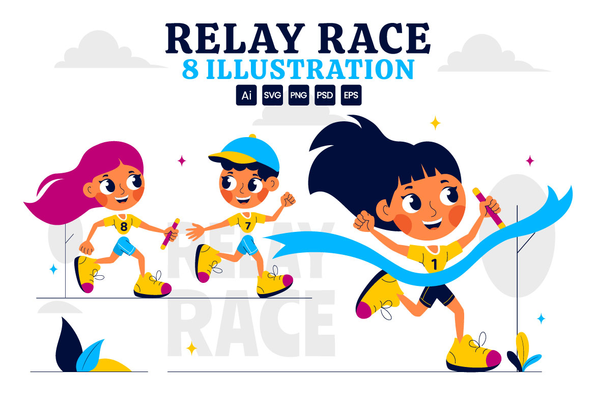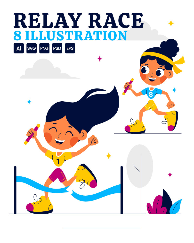 Relay Race Vector Illustration by Passing the Baton to Teammates Until Reaching the Finish Line in a Sports Championship on a Flat Cartoon Background Suitable for Poster, Web Banner, Brochure, Landing Page and Others Background Template Features: