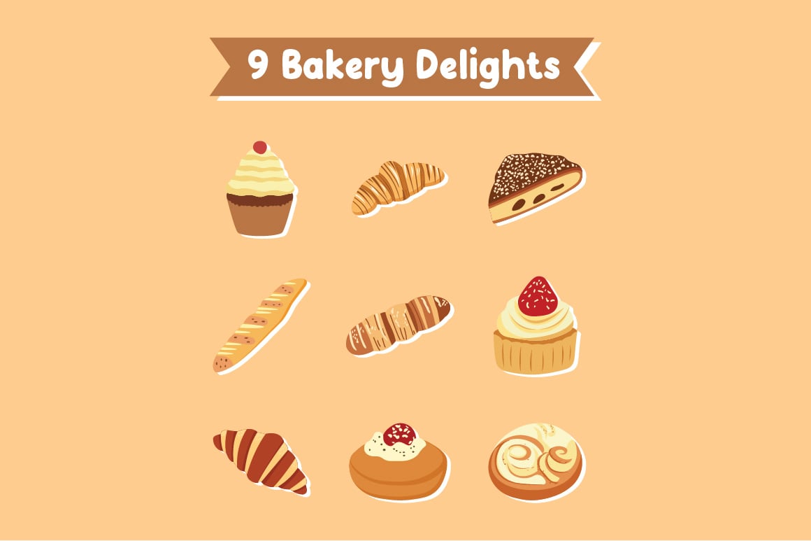 9 Bakery Delights Cupcakes, Croissants & Treats Illustration