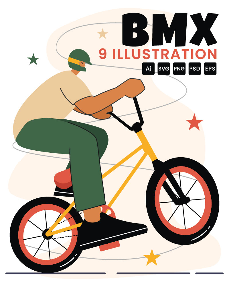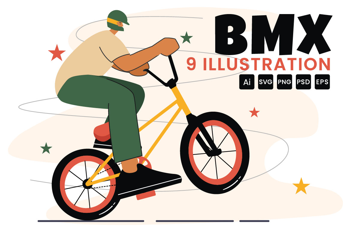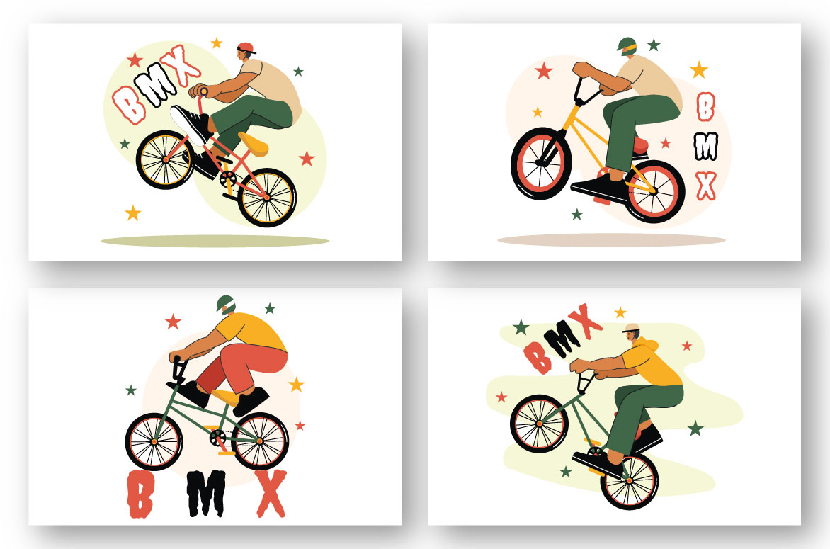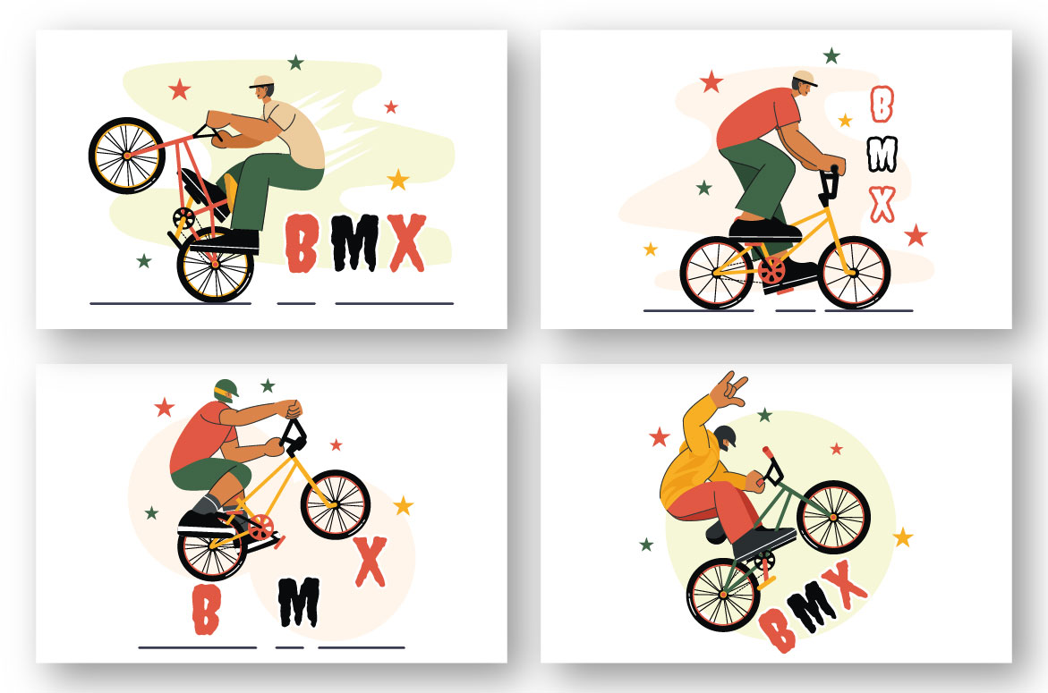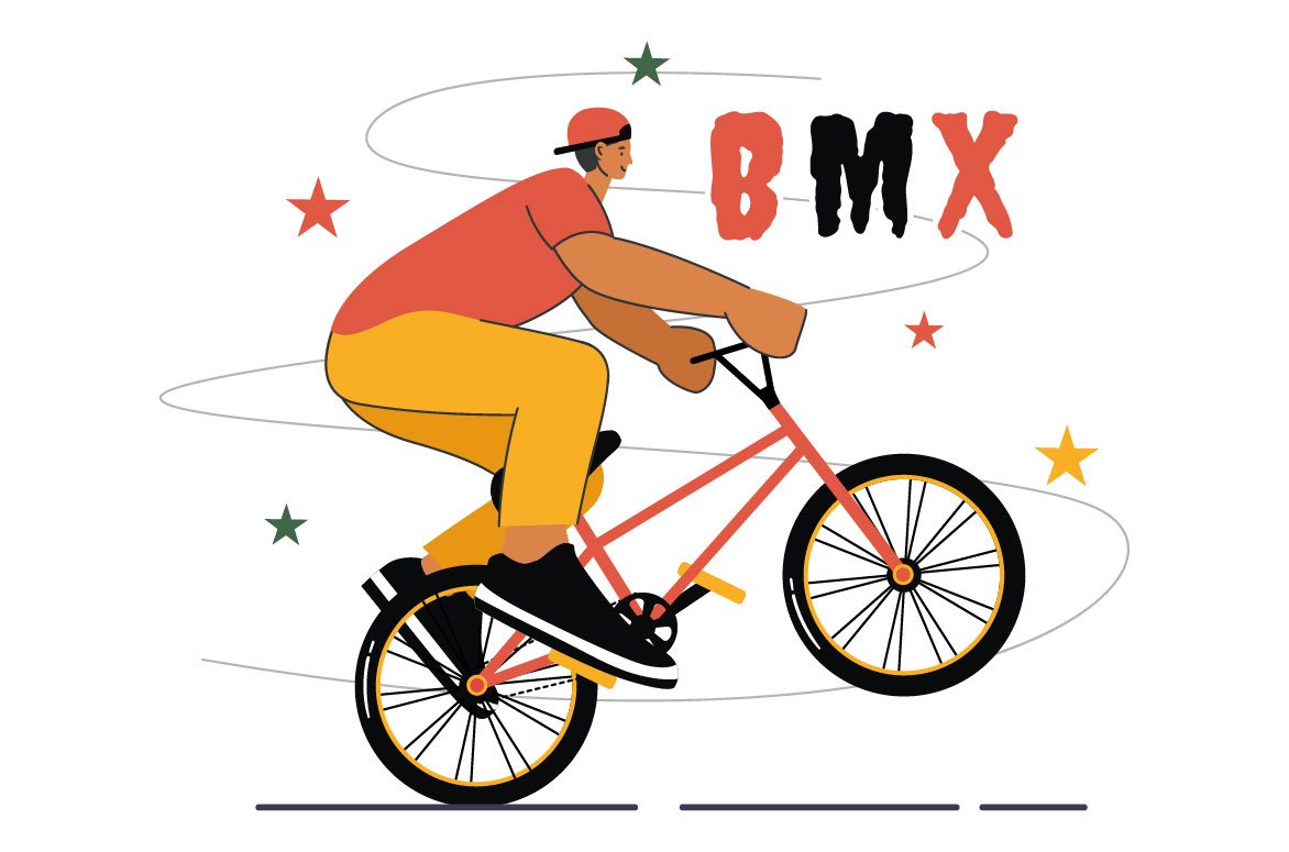 BMX Bicycle Sport Vector Illustration featuring a Man Performing Extreme Stunts, such as Jumping or Standing, in a Flat Style Cartoon Background Suitable for Poster, Web Banner, Brochure, Landing Page and Others Background Template Features: