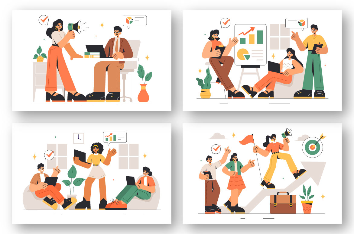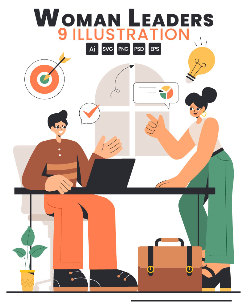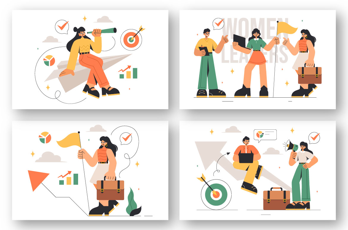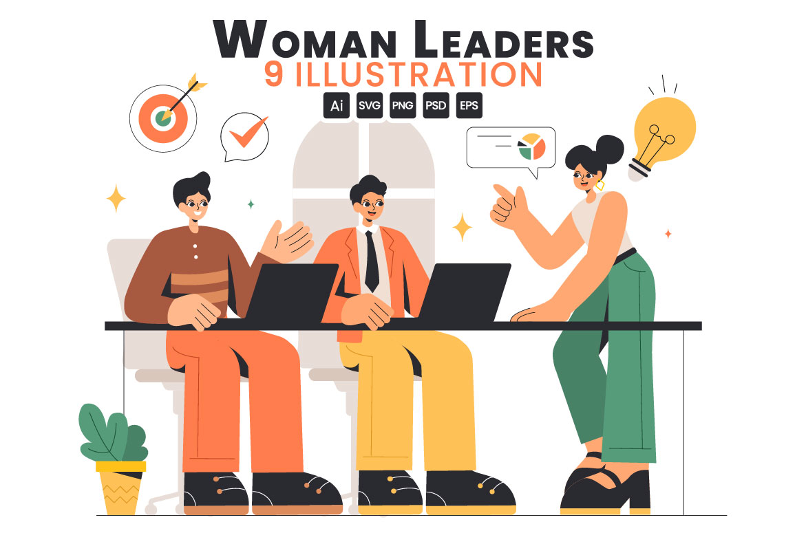 9 Businesswomen Leadership Illustration