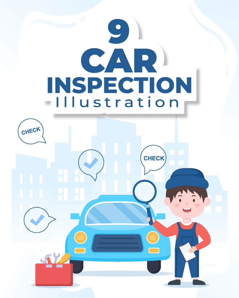 Car Inspection of The Station Detects Faults, Draws up a Checklist of All Breakdowns, Repair and Analysis Transport in Flat Cartoon Illustration Suitable for Poster, Banner, Cover and Other Template Features: