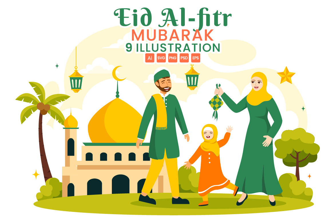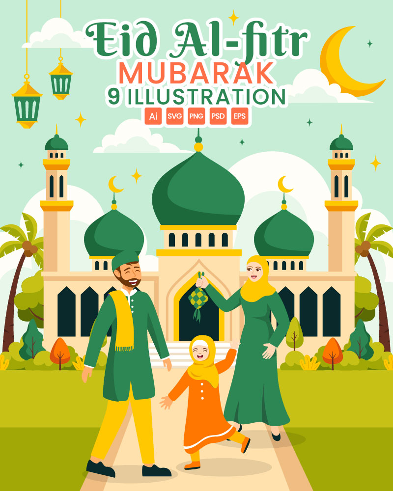 9 Happy Eid Al-Fitr Mubarak Illustration