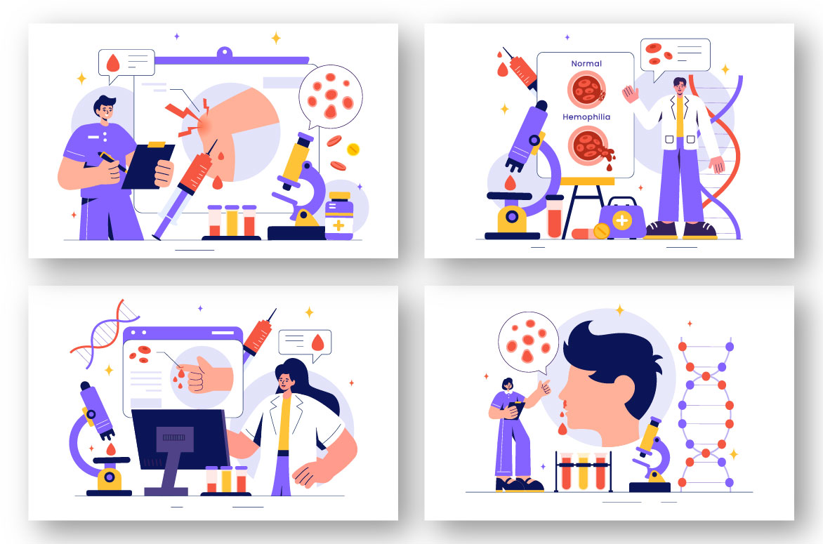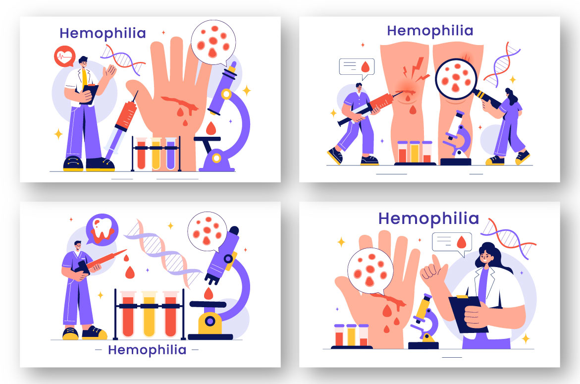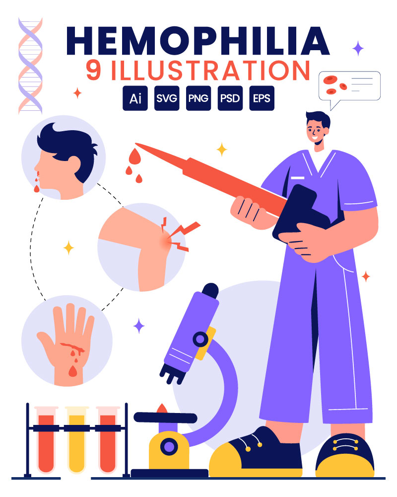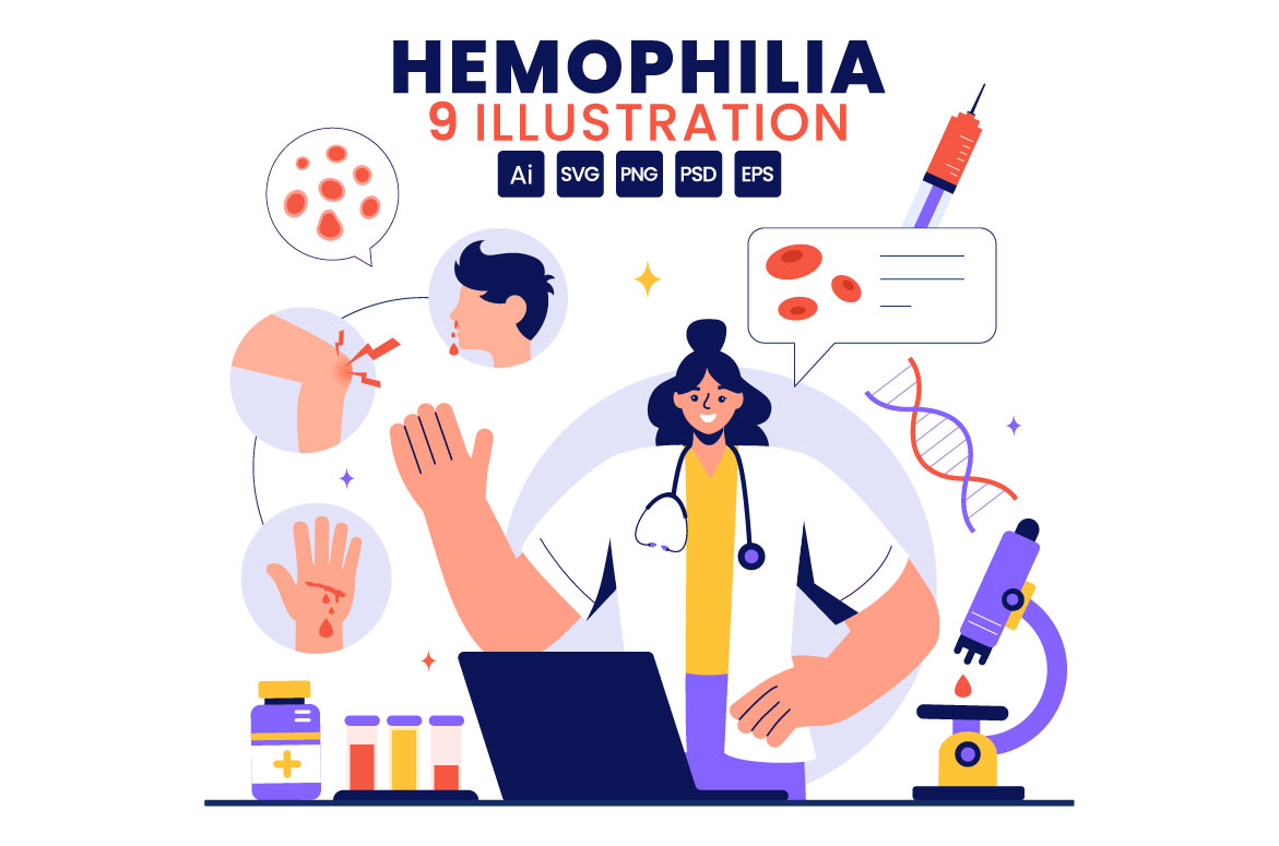 Hemophilia Vector Illustration Featuring a Doctor Examining an Injured Knee or Joint and Blood Disorders in a Healthcare Flat Style Cartoon Background Suitable for Poster, Web Banner, Brochure, Landing Page and Others Background Template Features: