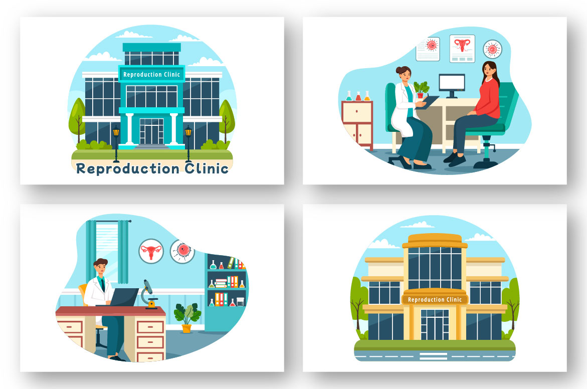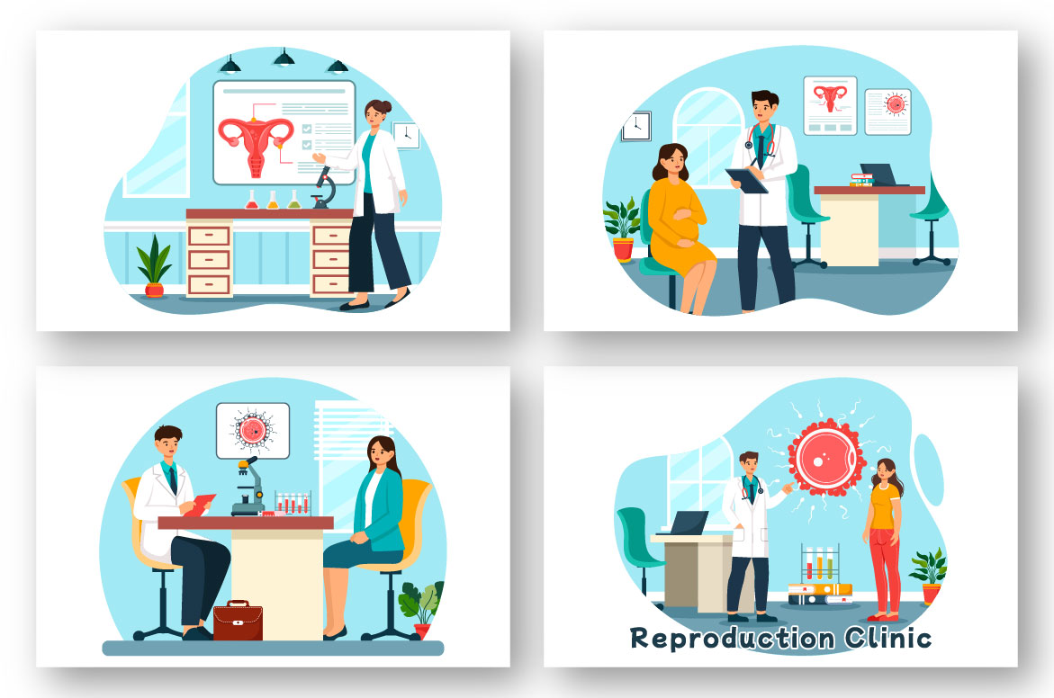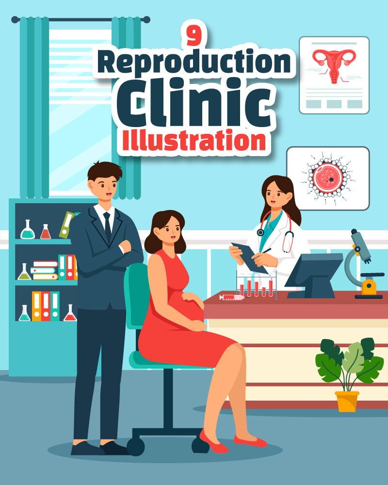 Reproduction Clinic Vector Illustration featuring Assisted Reproductive Technology, Test Tube Fertilization or Egg Cell in a Cartoon Background Suitable for Poster, Web Banner, Brochure, Landing Page and Others Background Template Features: