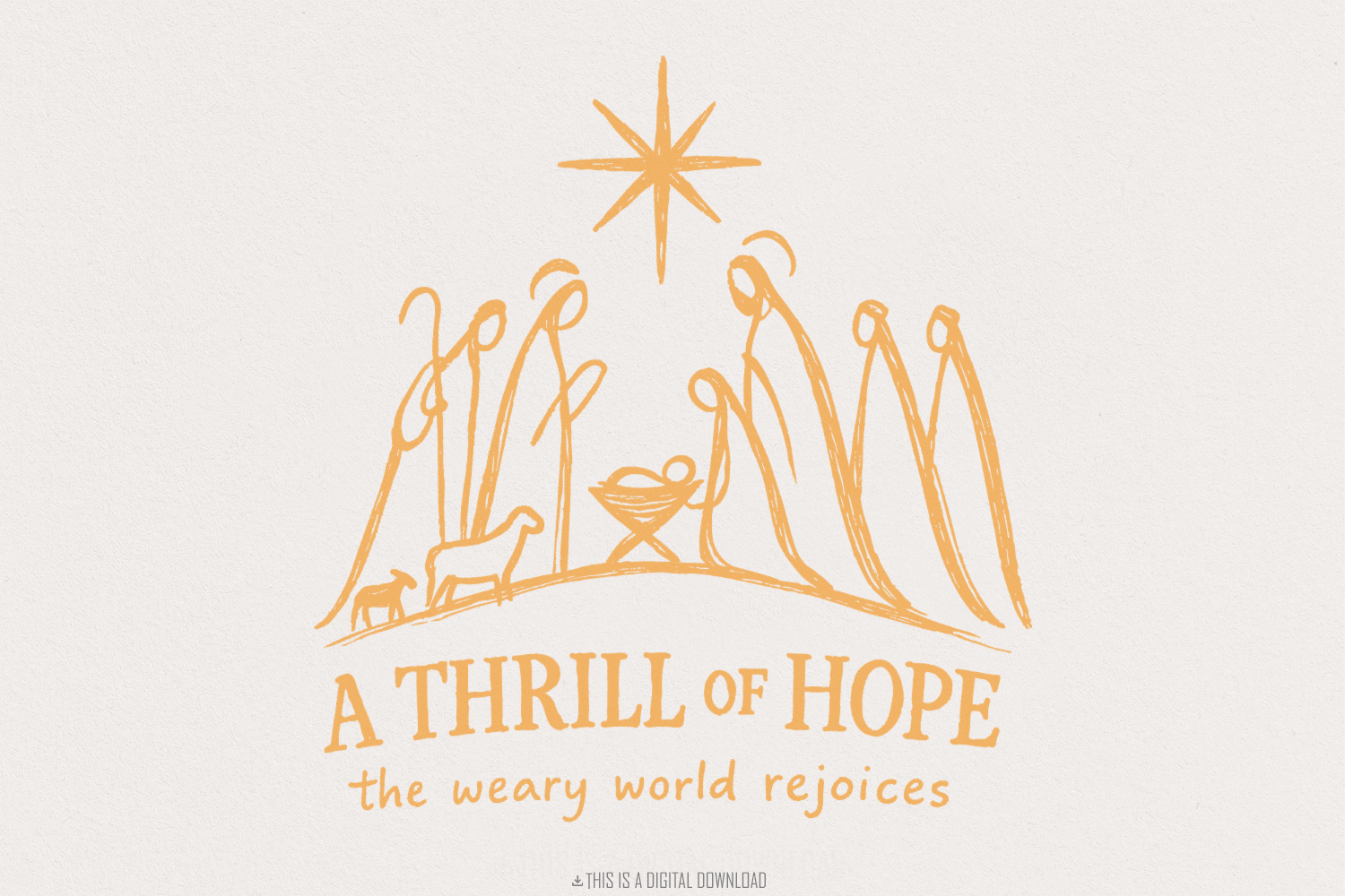A Thrill Of Hope The Weary World Rejoices PNG, Nativity Scene PNG, Christian Christmas Shirt, Illustration
