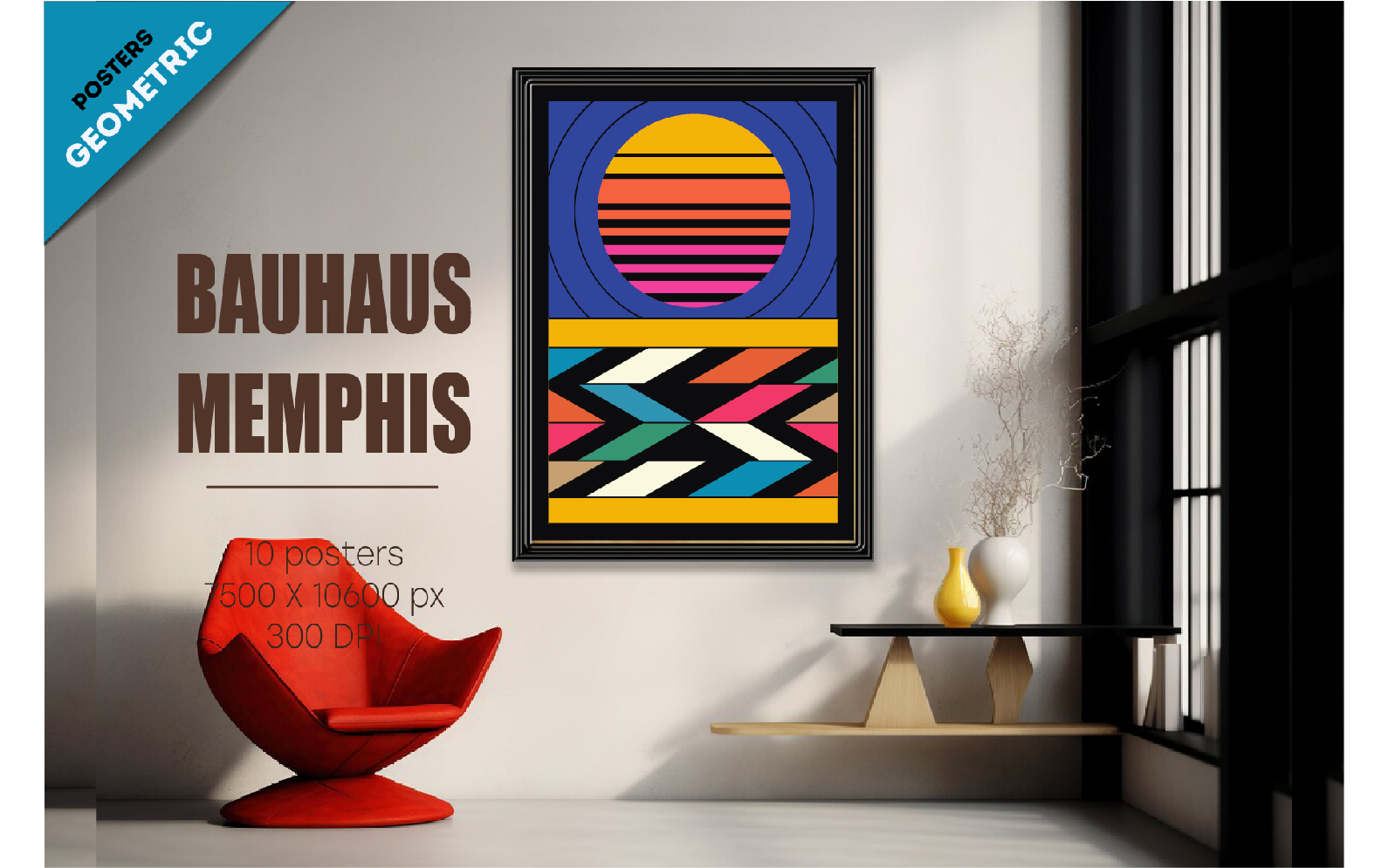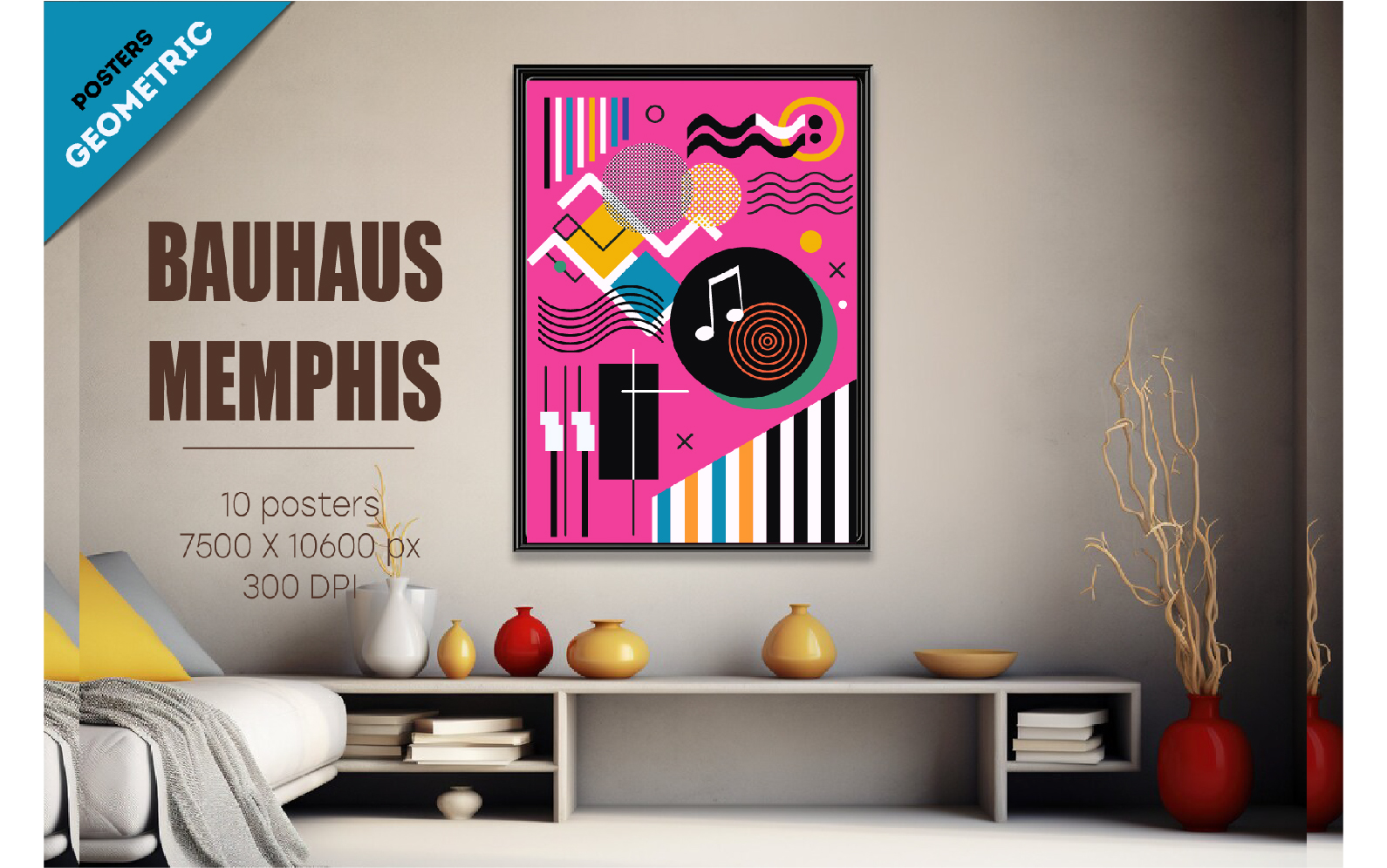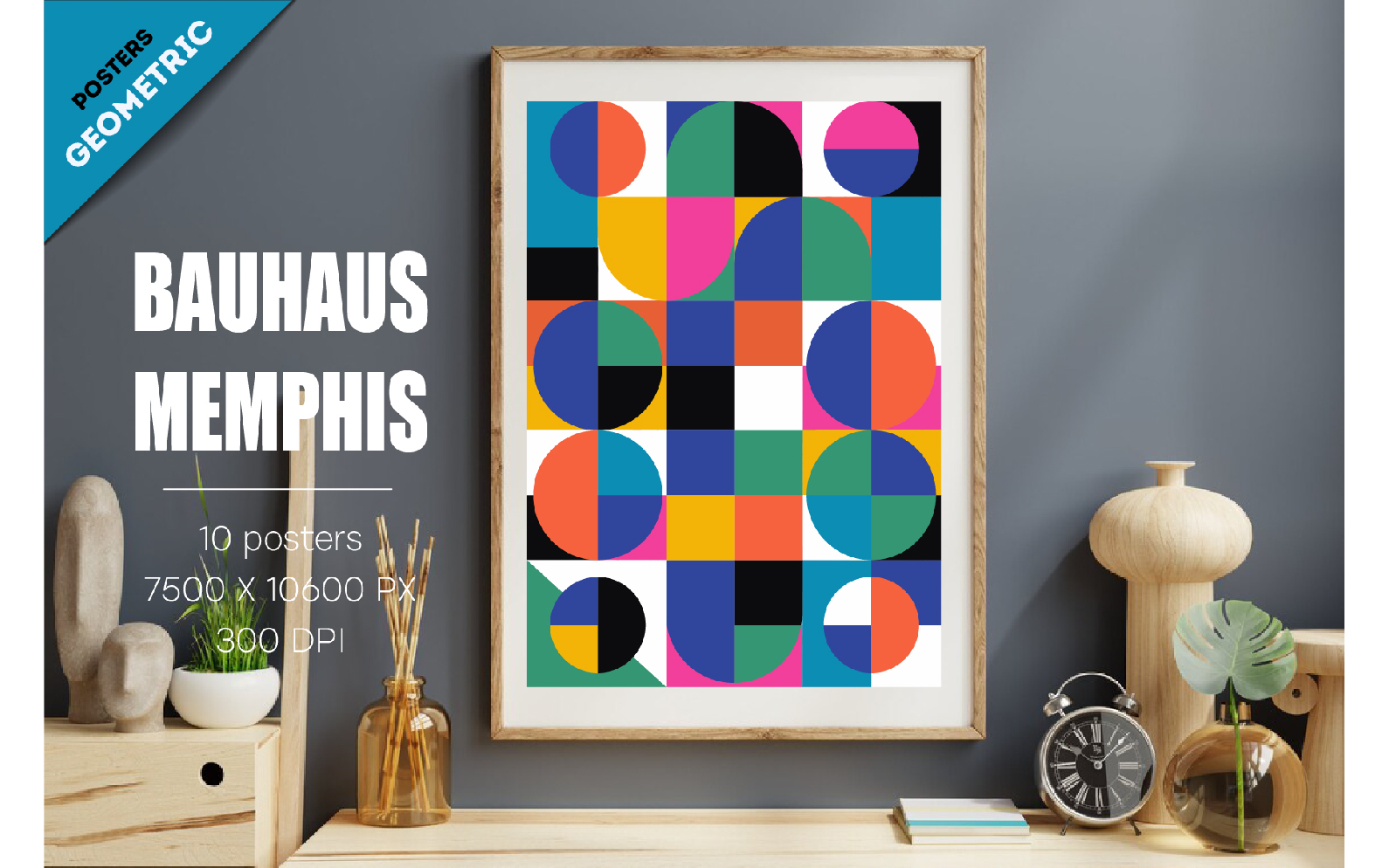 Abstract geometric Bauhaus, Memphis 02. 10 Posters.