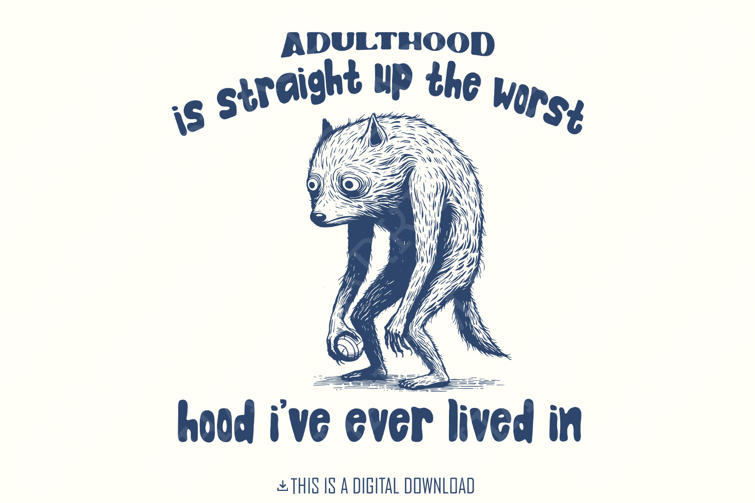 Adulthood is The Worst Hood I've Lived In PNG, Funny Tired Animal, Adulthood PNG File, Adult Humor Illustration