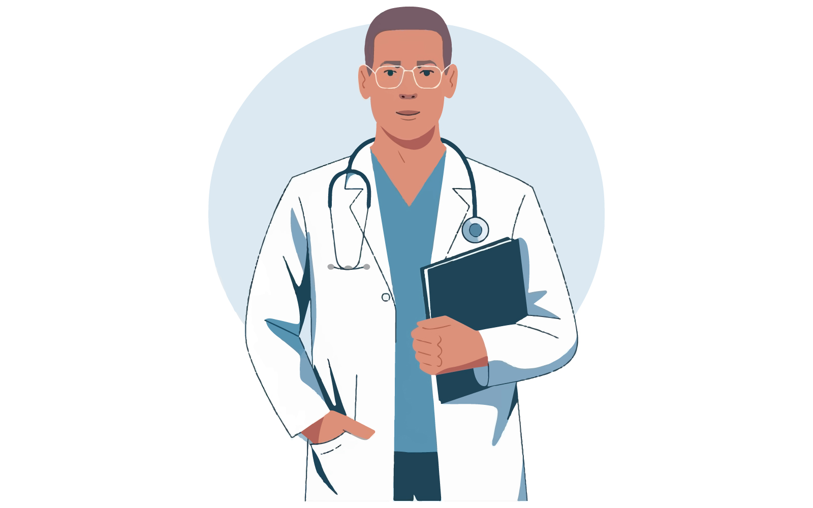 An illustration of a doctor in a white coat holding a folder in his hand Illustration