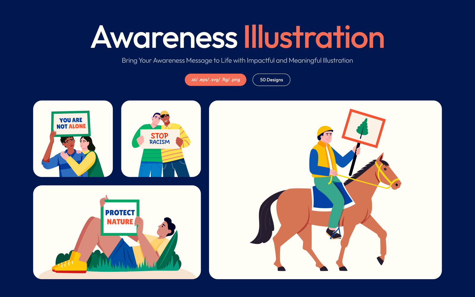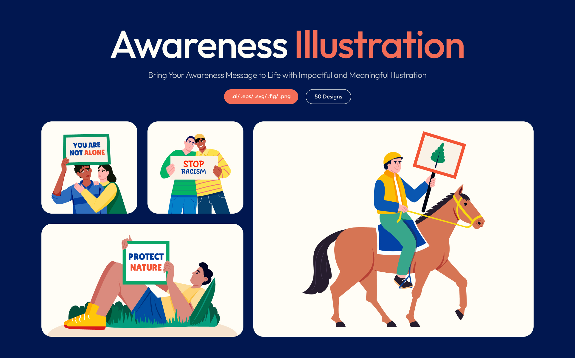 Bring purpose and impact to your creative work with this Awareness Illustration Art Set. Perfect for social media, educational materials, health campaigns, and sustainability projects, this versatile pack includes high-quality illustrations in multiple formats. Whether you're promoting environmental action, health awareness, or community education, these thoughtfully designed elements help you communicate your message clearly and creatively. Easy to customize and ideal for both print and digital use