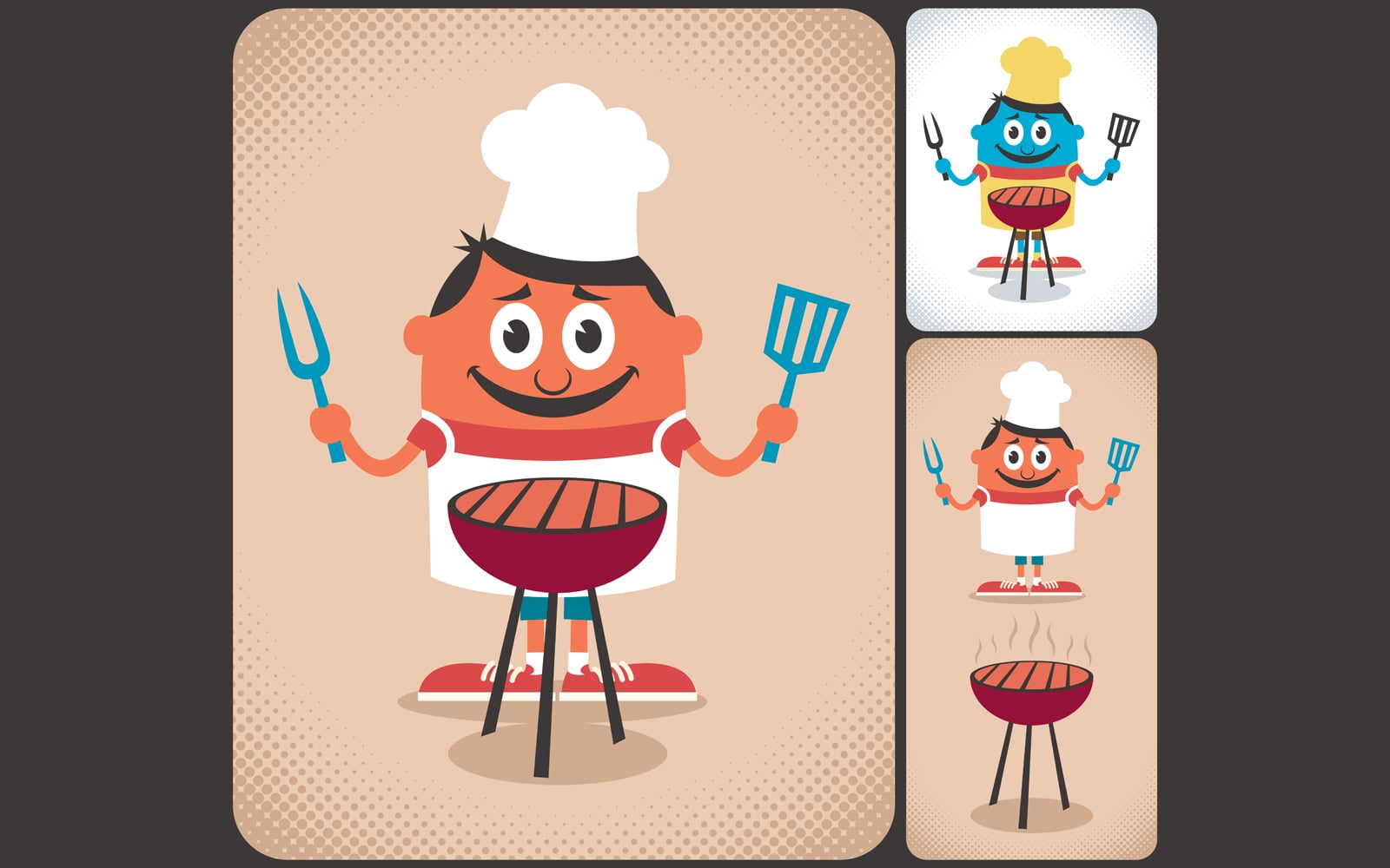 Cartoon character with barbecue grill.