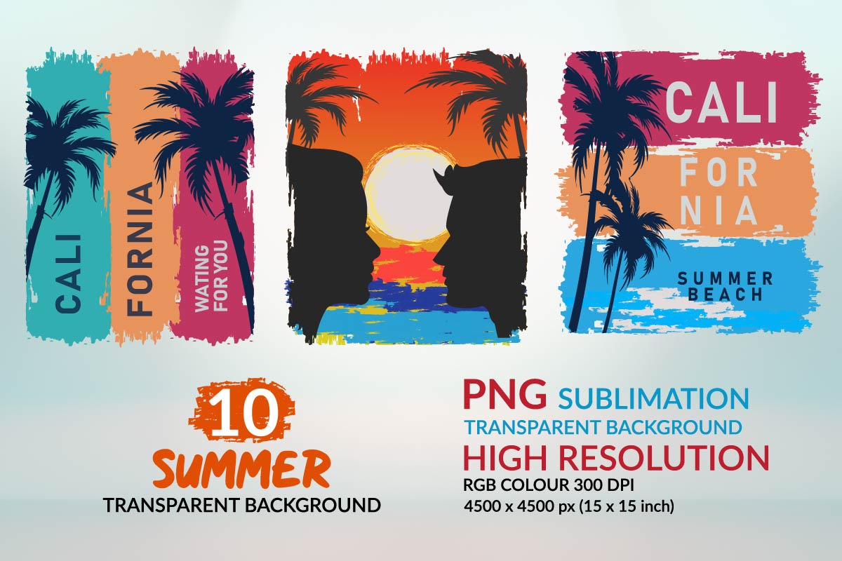 10 Beach and Sunset PNG colorful backgrounds Bundle for who love summer, sunset, beach, surfing and travel.