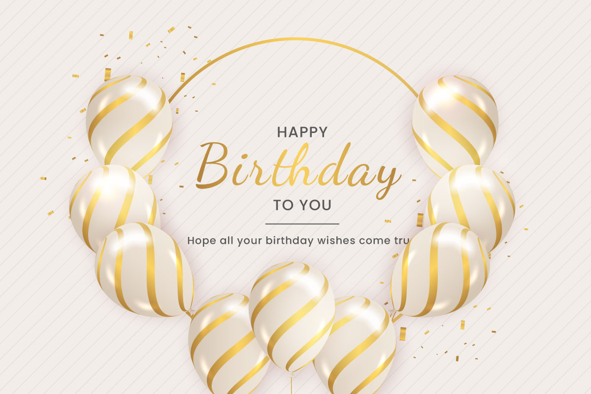 Birthday wish with Realistic golden balloon set with golden confetti balloon background, Ready to use for Multipurpose uses, All main elements are editable and customizable.