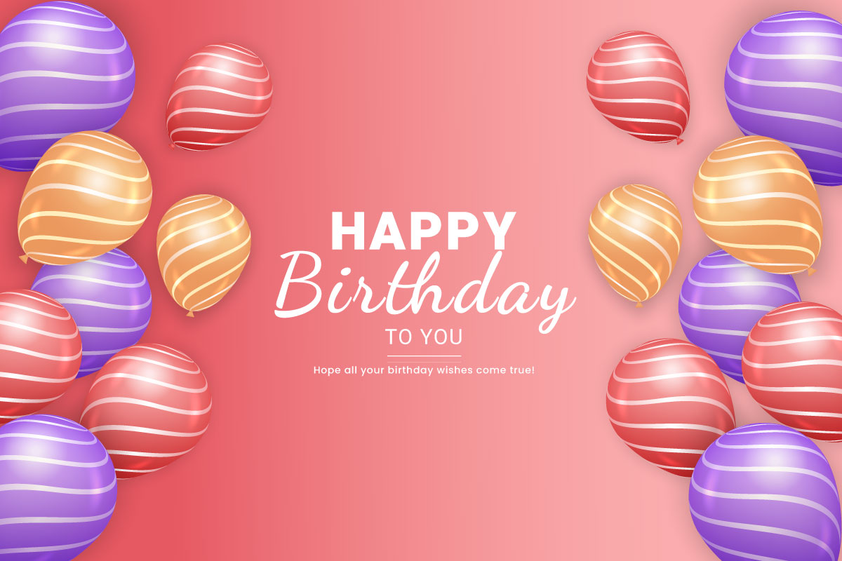 Birthday wish with Realistic pink balloon set with confetti background, Ready to use for Multipurpose uses, All main elements are editable and customizable.