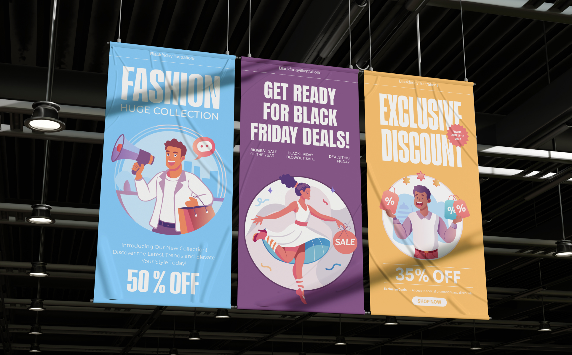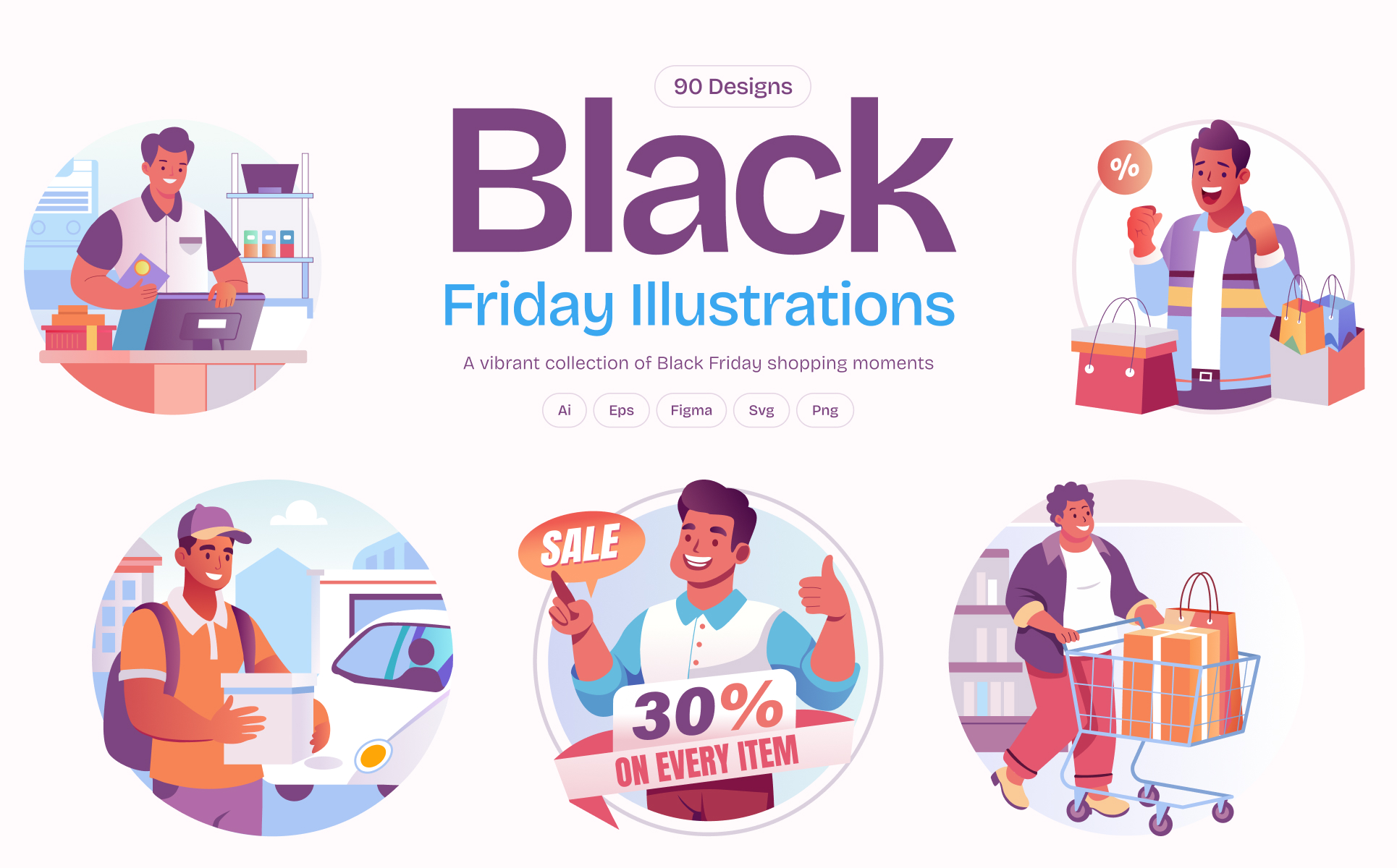 Get ready to transform your marketing campaigns with this vibrant and versatile Black Friday Illustration Set! Packed with premium-quality vectors, this collection is perfect for designing banners, flyers, store promotions, and social media posts. Let your creativity flow and captivate your audience with this all in one design package!