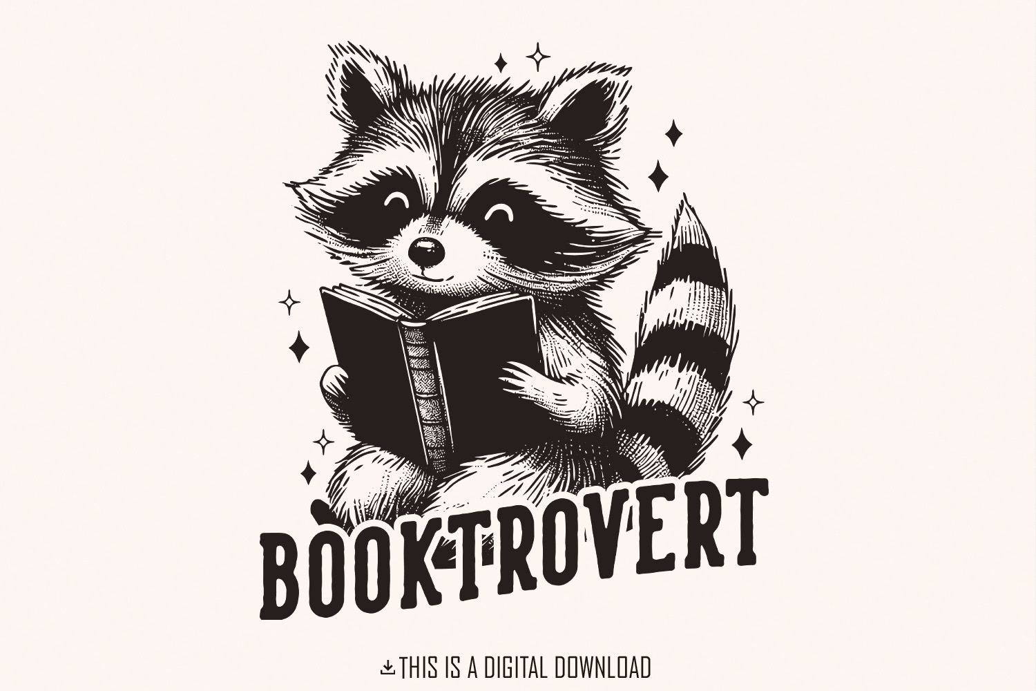 Booktrovert PNG, Funny Book Lover PNG, Reading Raccoon png, Book Lover Gift PNG, Librarian png, Illustration