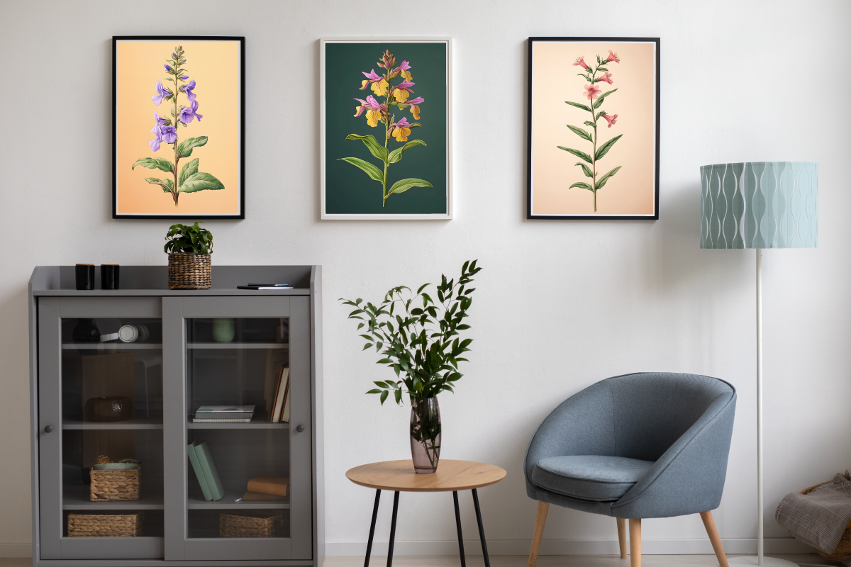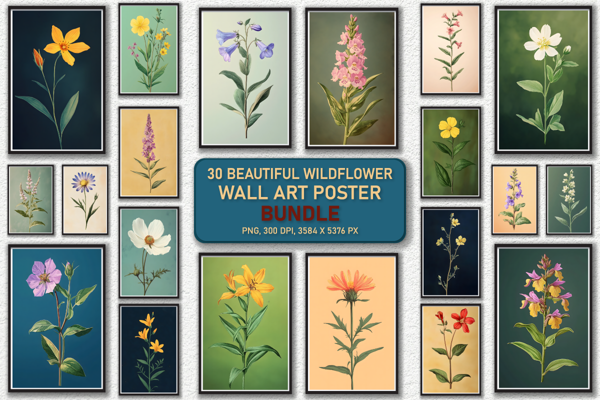 Botanical Wildflower Wall Art Poster Bundle Illustration