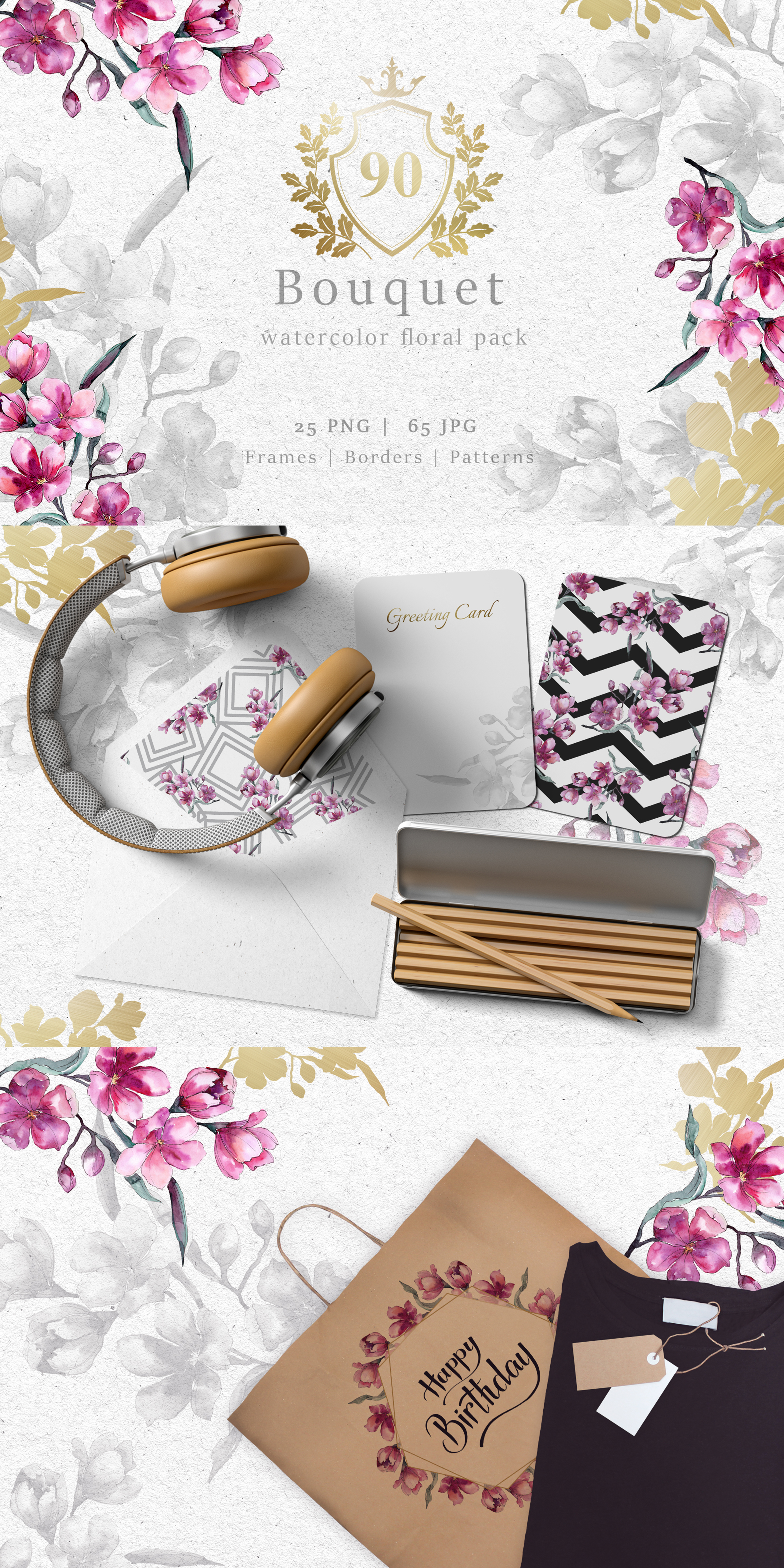 Elements are painted by hand and every image is a separate file. The graphics are a PNG file, 300 dpi, without background. Patterns and Frames are JPG size 3500x3500px.