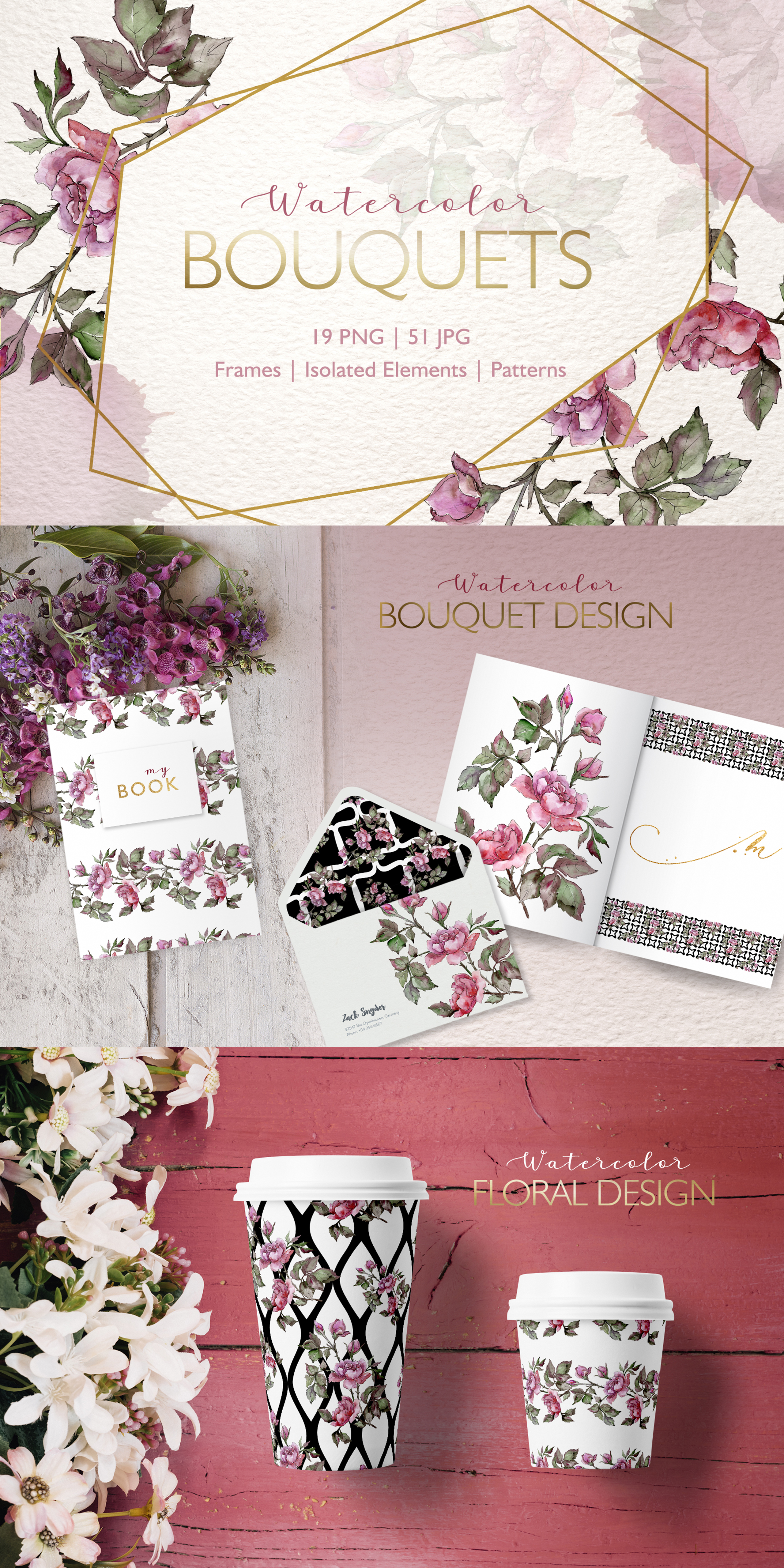 Bouquets Watercolor png clipart of 70 files. Ideal material for DIY, wedding invitations, greeting cards, quotes, blogs, posters and more.
