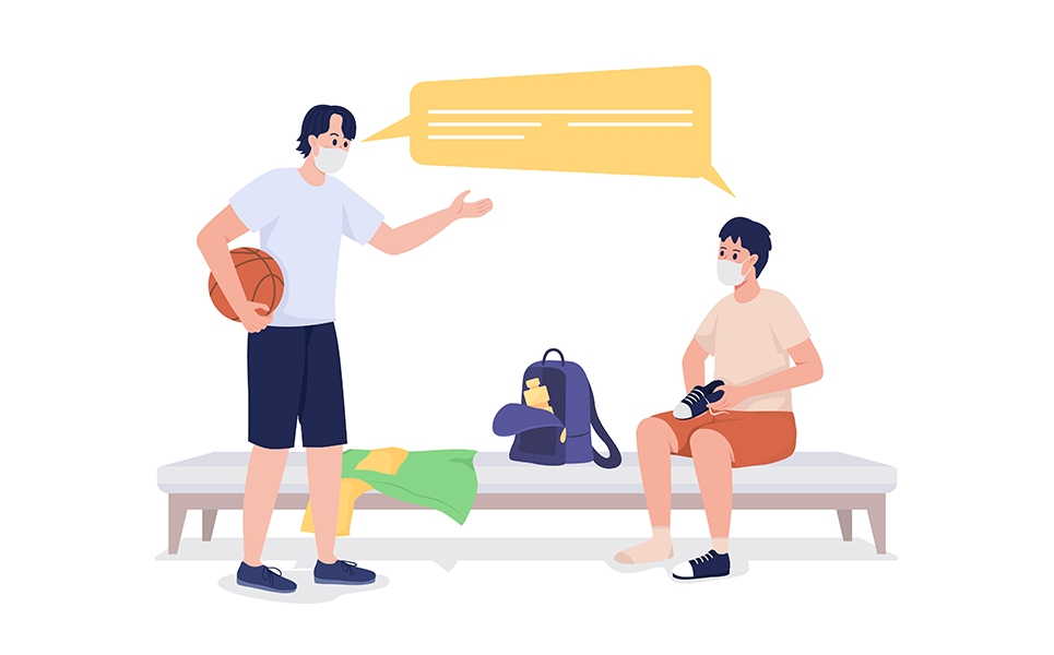 Boys from school sports team semi flat color vector characters. Talking figures. Full body people on white. Gym isolated modern cartoon style illustration for graphic design and animation .