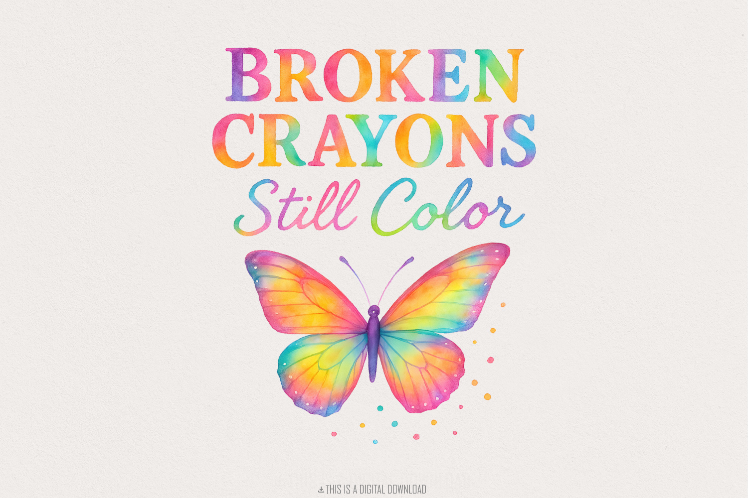 Broken Crayons Still Color, Butterfly PNG, Mental Health Art, Positive Inspirational Design, Mental Health Png, Motivational Png, Self Love