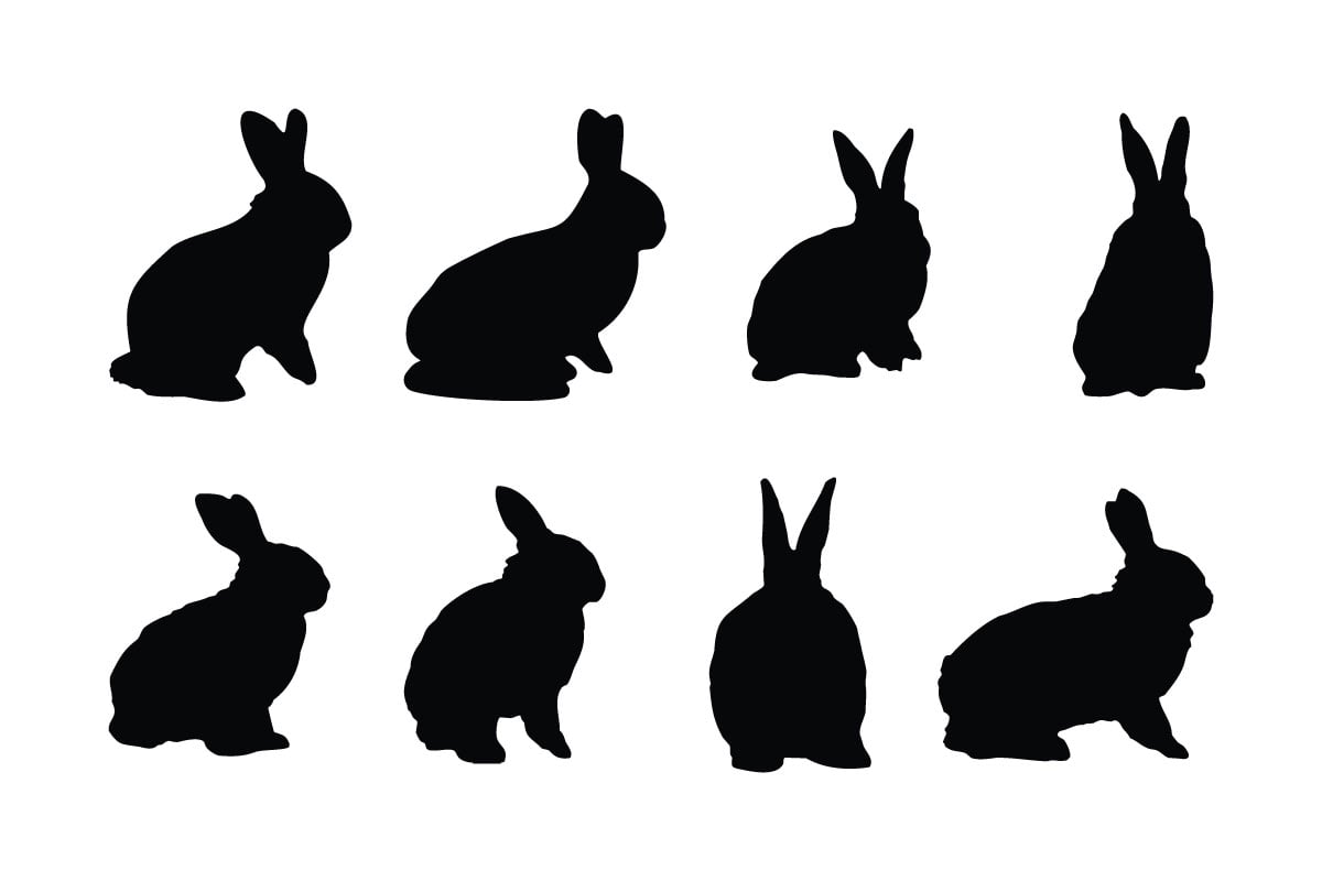 Bunny rabbit silhouette collection. Cute bunny rabbit jumping in different positions. Bunny rabbit silhouette set vector on a white background. Cute rabbit standing silhouette collection. Bunny silhouette icon bundle design.