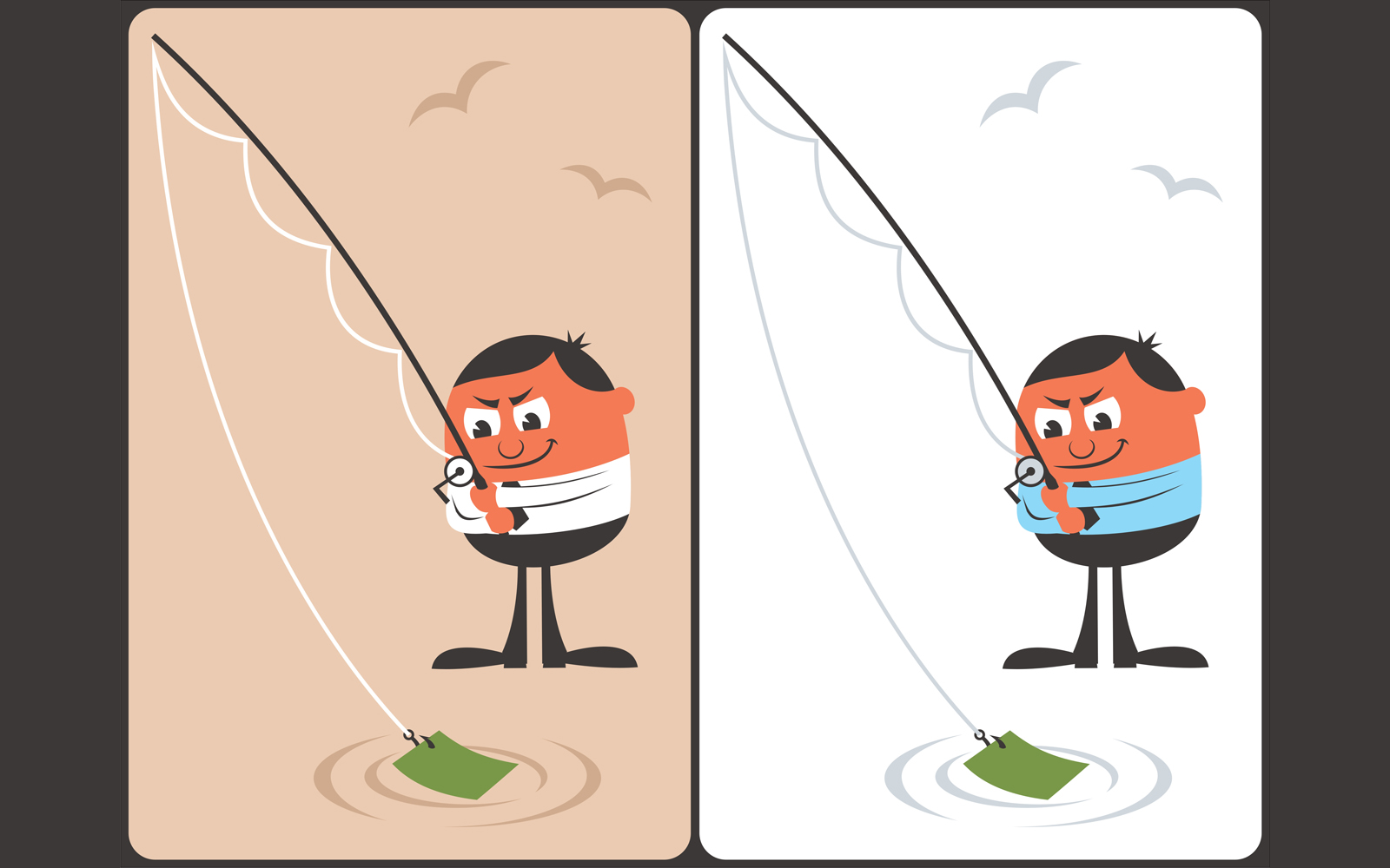 Conceptual illustration with fishing businessman. It is in 2 color versions. No transparency and gradients used.