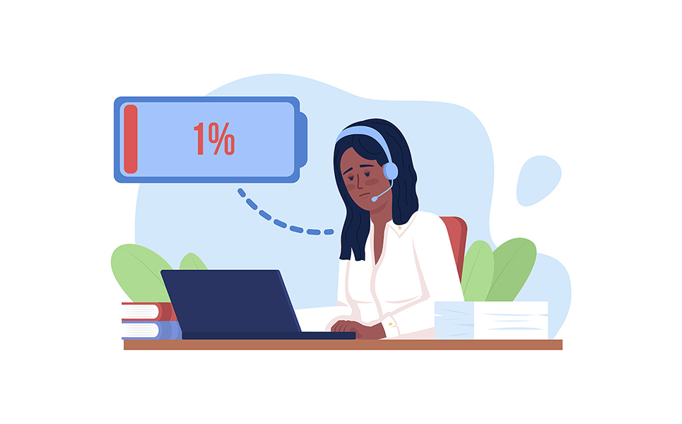 Call center operator with burnout 2D vector isolated illustration Illustration