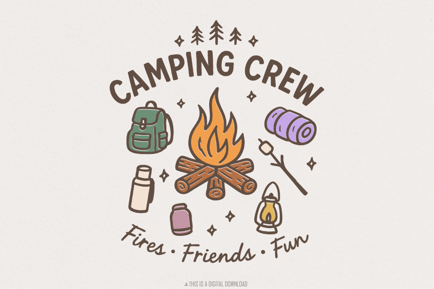 Camping Crew PNG, Fires Friends Fun, Outdoor Adventure Clipart, Hiking Backpack PNG, Campfire Art, Digital Download, Camping Shirt Design